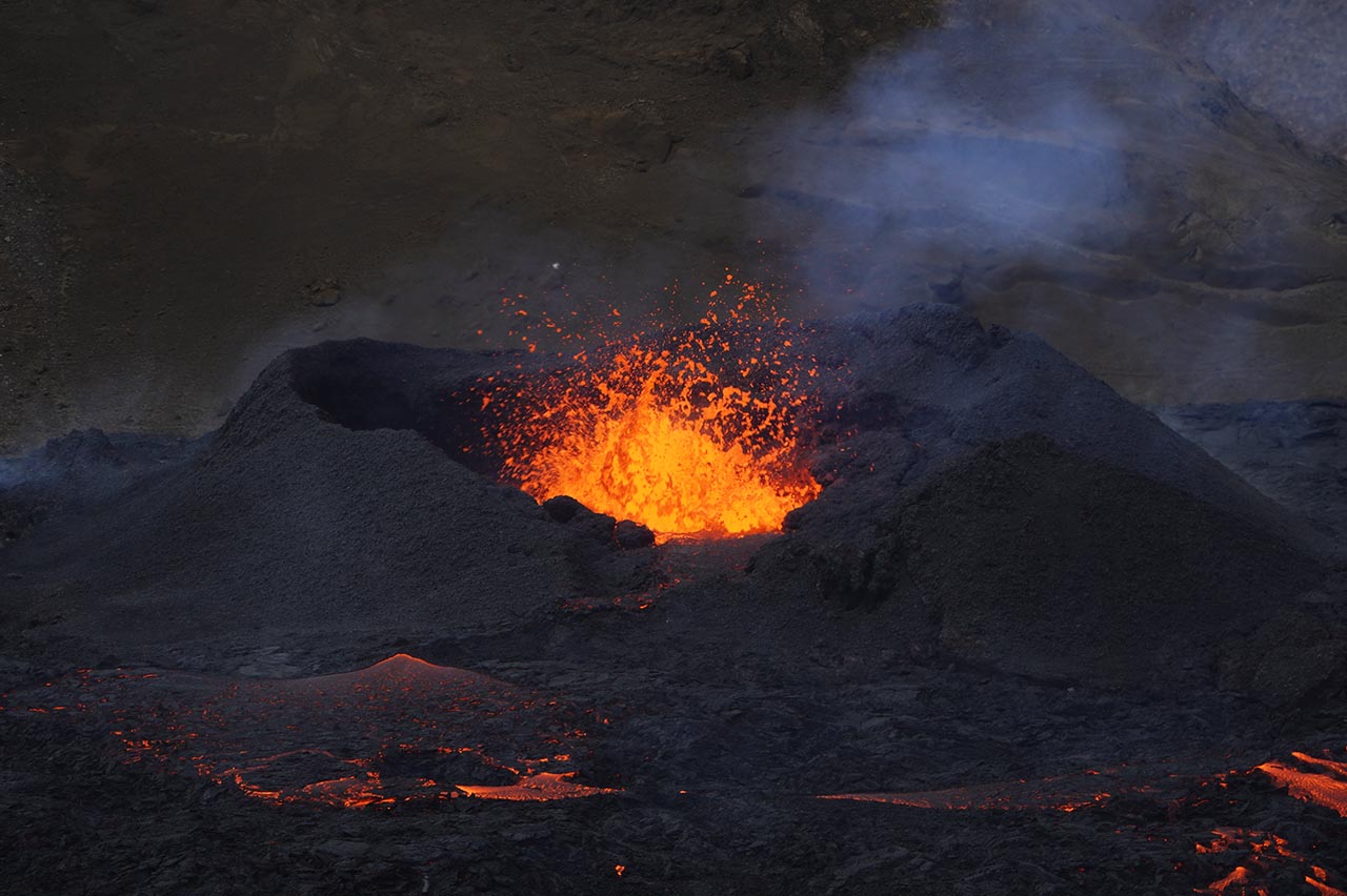 Llegamos, por fin, a la parte más interesante. ¿Qué ver en una semana en Islandia? Pues teniendo en cuenta nuestra ruta y que se va a circular por la parte sur, hay que decir que en nuestro caso tuvimos una suerte de las que pocas veces se tienen. Todo cuadró a la perfección para que pudiésemos ver el volcán Geldingadalir en erupción, cuyo cráter podía medir entre 100 y 120 metros de diámetro. Estuvimos a tan solo unos 200 metros de él.