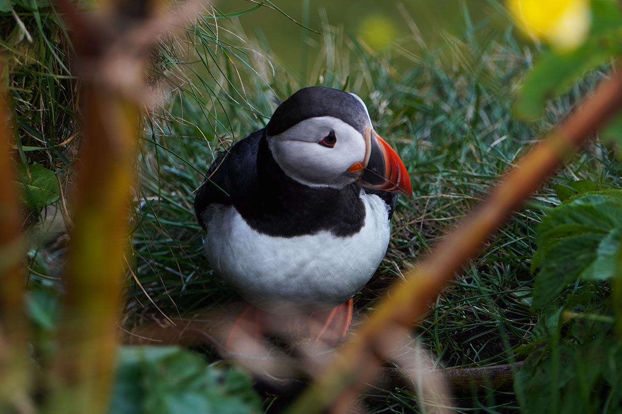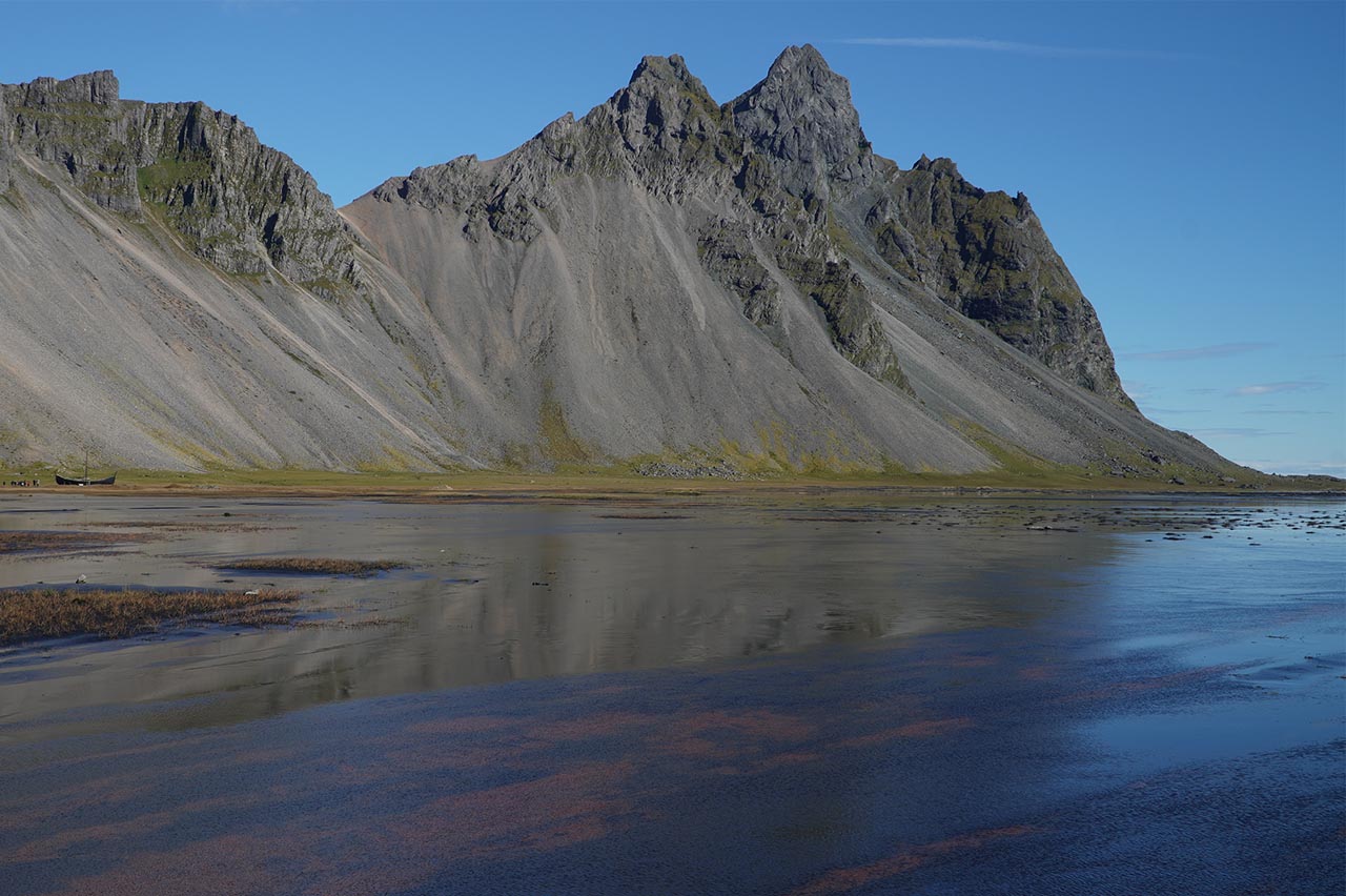 Seguidamente nos dirigimos a ver una especie de ave típica del sur de Islandia, los frailecillos. Son algo parecido a un híbrido entre pingüino y pato, pero es verdad que no son del todo sencillos de avistar, pues suelen situarse en las laderas de las montañas. Y de ahí pasamos a Svartifoss, otra cascada. En Höfn hay un atardecer precioso, y de camino allí está la playa de diamantes y un lago helado con trozos del glaciar. Y al lado del pueblo está Stokksnes, una zona de dunas negras y montañas preciosa, en donde también puedes caminar 'sobre' una playa cuya profundidad es de un centímetro.