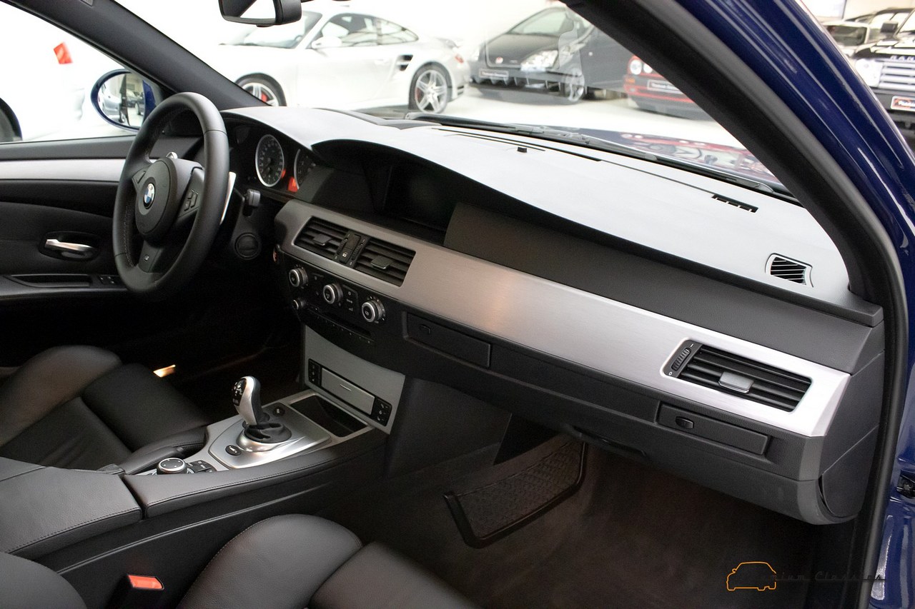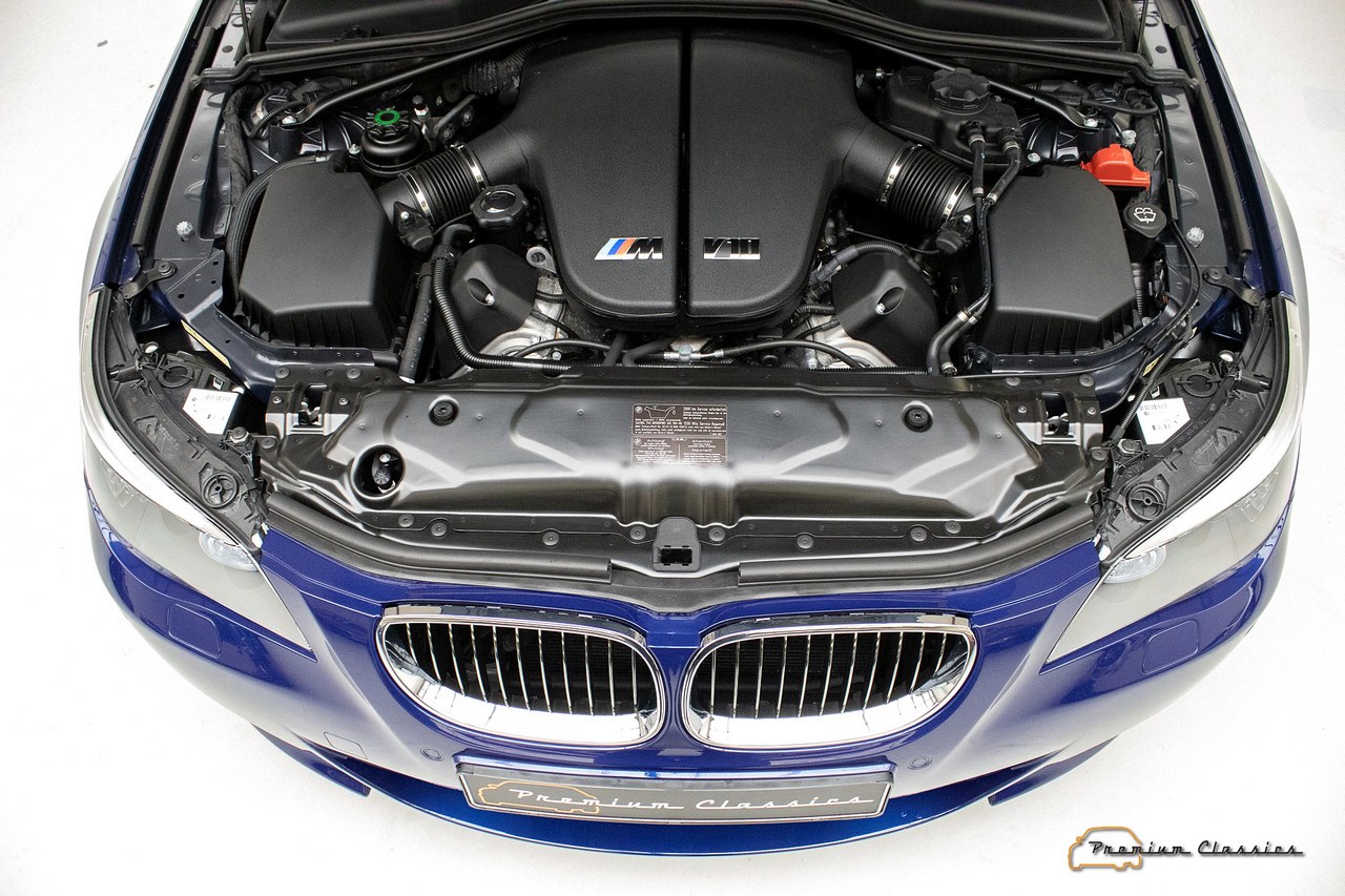 Este BMW M5 E60 de 2009 con 13.000 km, como todos los de esta generación, está animado por el famoso motor S85 de BMW. Un bloque 5.0 V10 que es capaz de desarrollar una potencia máxima de 507 CV a 7.750 revoluciones por minuto y 520 Nm de par a 6.200 vueltas. Un aspecto curioso del S85 es que de serie ofrece dos niveles de potencia que el conductor puede seleccionar. En el modo normal entrega 400 CV, mientras que en el modo deportivo alcanza los mencionados 507 CV.