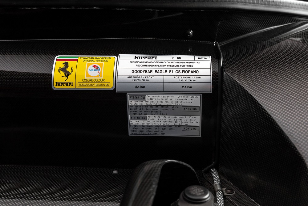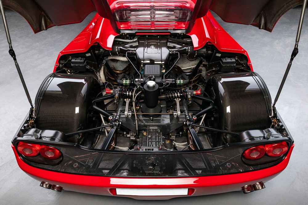 Este motor alcanza los 520 CV de potencia a nada menos que 8.000 revoluciones por minuto, si bien, se dice que gracias a sus orígenes de competición podría haber superado sin problemas las 10.000 vueltas. Genera 591 Nm de par motor y con él, el F50 teóricamente es capaz de acelerar de 0 a 100 km/h en 3,7 segundos y de alcanzar una velocidad punta de 325 km/h, unos datos increíbles incluso 25 años después de su lanzamiento.