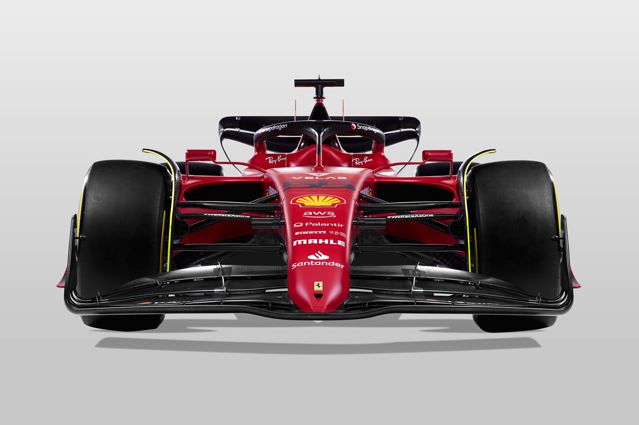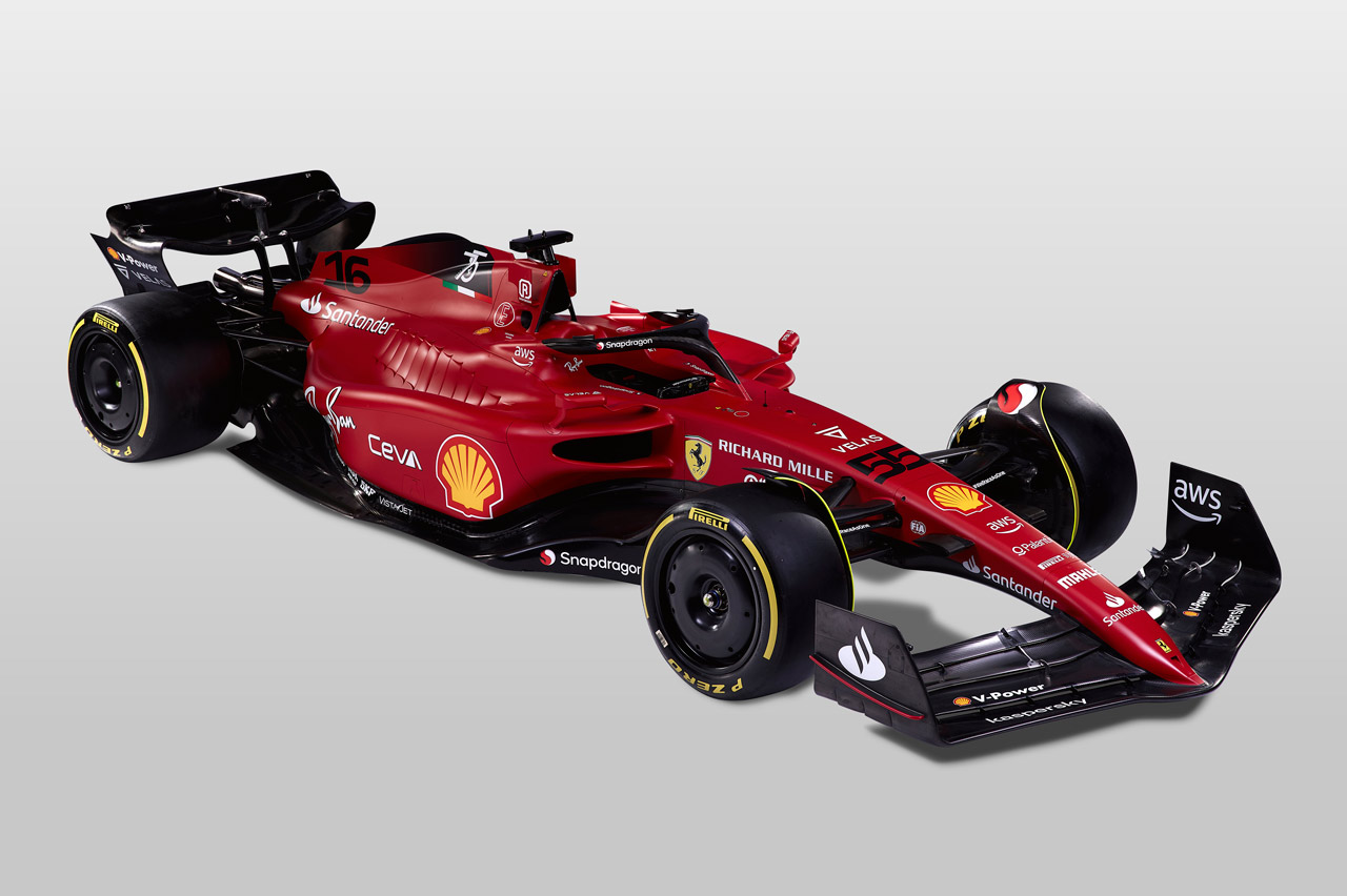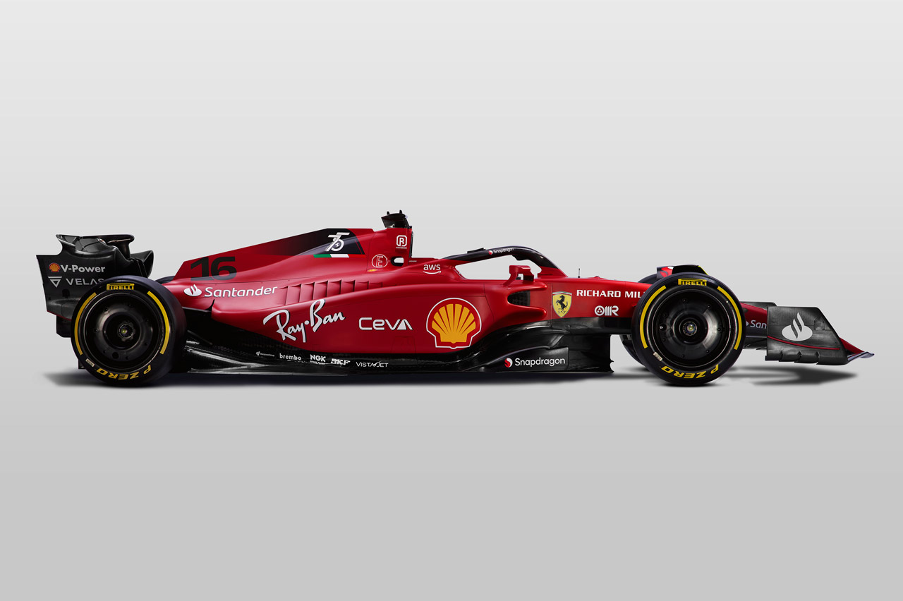 El F1-75 mantiene el color rojo, pero ahora combina el negro en la parte baja. Toma de nuevo el logotipo del Banco Santander, pero desaparece cualquiera de las iniciativas de Philip Morris por primera vez en 30 años.