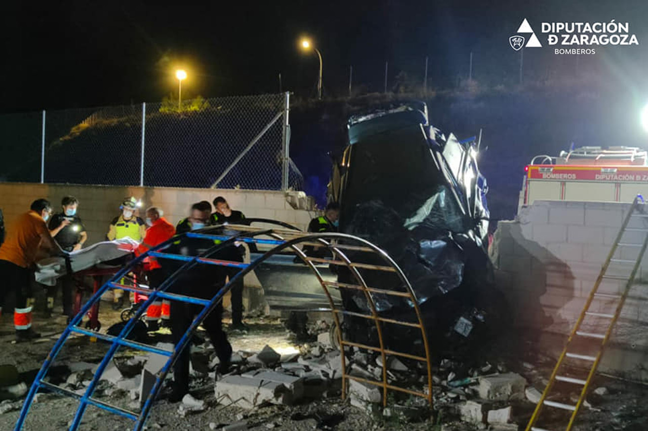Según fuentes policiales, los dos jóvenes sufrieron el aparatoso siniestro después de darse a la fuga de un control preventivo puesto en marcha por la Policía Nacional en uno de los accesos al municipio zaragozano. Los hechos ocurrieron sobre las 3:30 de la madrugada del pasado domingo y debido al estado en el que quedó el vehículo tras el accidente, se requirió la presencia de los bomberos y de los servicios médicos.