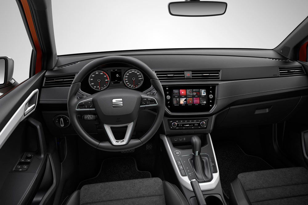 El interior del SEAT Arona destaca por su concepto de ‘Consola elevada’, donde todo ha sido diseñador para que esté orientado al conductor, para que que este aparte lo más mínimo la mirada de la carretera. Y es que esa sensación de robustez y seguridad del exterior también se siente en el habitáculo, un habitáculo que ofrece múltiples opciones de personalización (hasta 68 posibles con las exteriores). Equipa colores y tejidos exclusivos y llama la atención la pantalla táctil Black Panel Premium de 20,3 cm (8”), que aumenta en gran medida la calidad percibida.