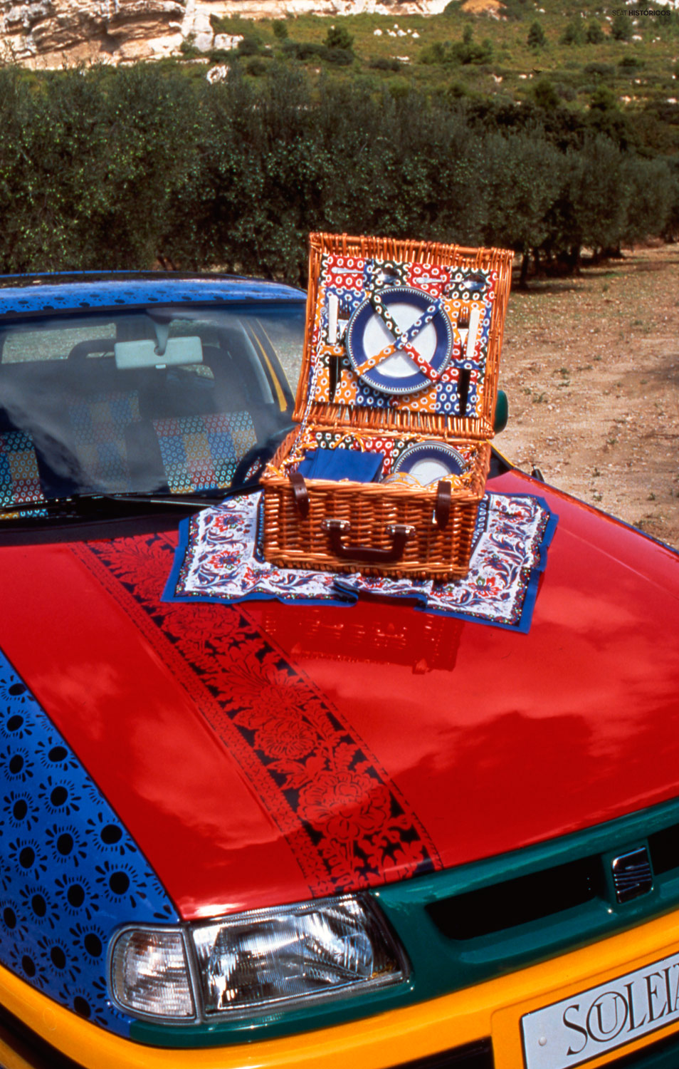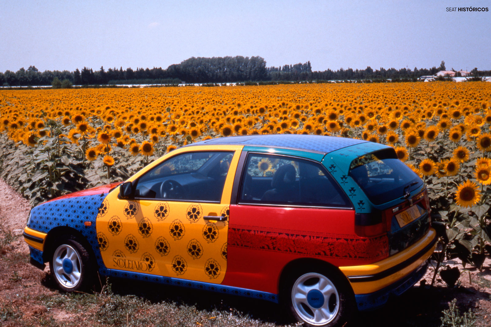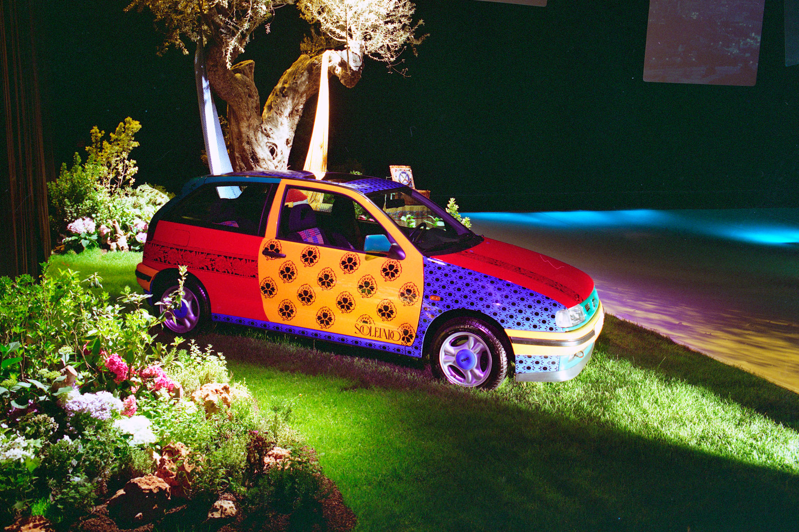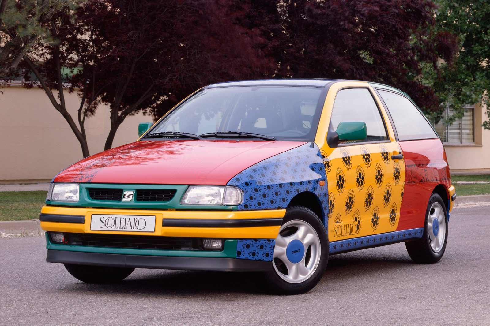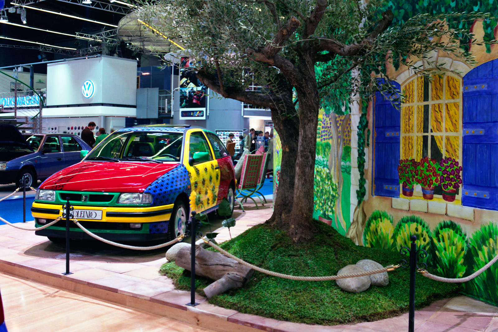 Pero el centro de toda mirada fue, sin duda, el SEAT Ibiza Souleiado, un concept-car que por su colorida carrocería recuerda al Volkswagen Polo Harlekin, automóvil también fabricado en España -se producía en la planta del Grupo en Landaben, Pamplona-, pero que no llegó a producción, como sí hizo el alemán.