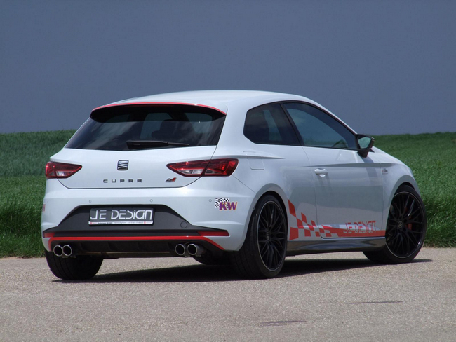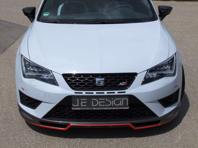 JE Design nos presenta su programa de personalización para el SEAT León Cupra, que incluye tanto mejoras estéticas como mecánicas. De esta forma, el compacto de tracción delantera más rápido del mundo, como demuestran los 7 minutos y 58,4 segundos que necesitó para recorrer el circuito de Nürburgring Nordschleife, lo es todavía más gracias a que la potencia de su propulsor llega hasta los 350 CV -280 CV en origen-.