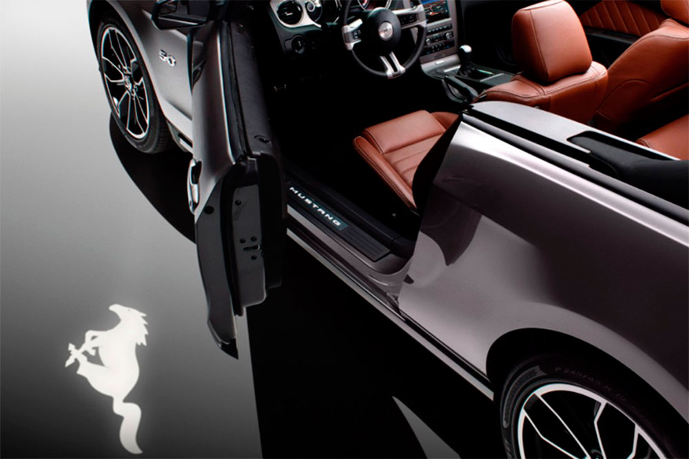 No es el primer coche que vemos que proyecte el logo de la marca en el suelo mediante luces LED: Range Rover Evoque (prueba Range Rover evoque), Ford Mustang 2014 (foto)… pero siempre es bienvenido un Huevo de Pascua (Easter Egg: descubre las cosas curiosas que esconden algunos coches).
