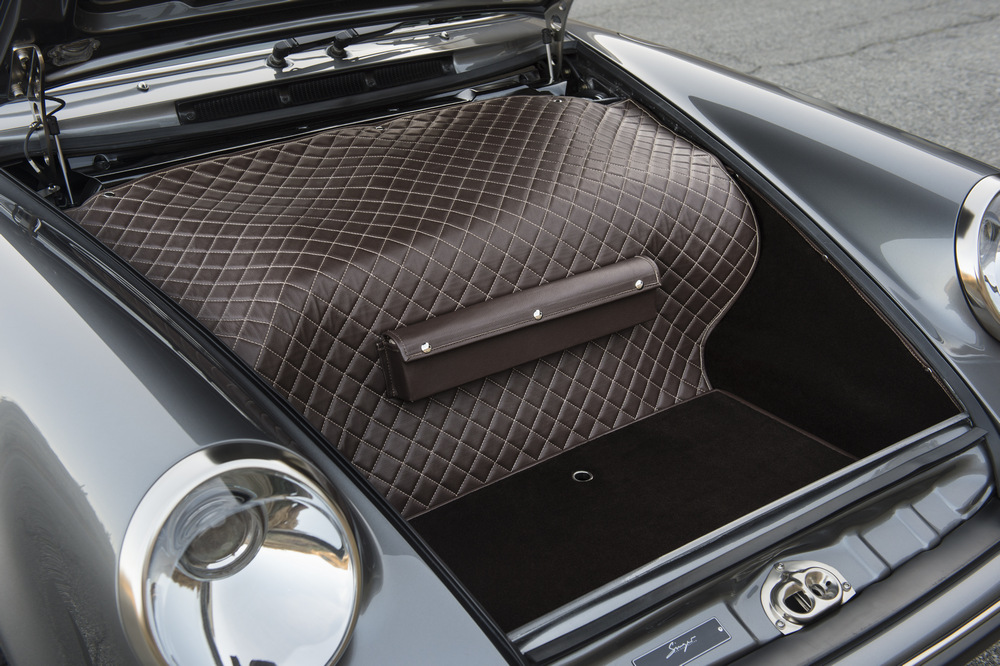 La otra joya, el Singer Porsche 911 ‘Minnesota’, está fabricado sobre la base de un Porsche 911 de 1994, probablemente una de las últimas unidades producidas del 964 con carrocería coupé. Luce una carrocería rematada en Gunmetal Grey y un habitáculo acabado en Tobacco Brown. En el interior, además de los exquisitos detalles y excelentes terminaciones, destaca el cuentavueltas, acabado en azul en lugar de en el habitual naranja de Singer. Una petición que hizo el propietario, un individuo que por cierto, también es el afortunado dueño del impresionante 911 Targa ‘Luxemburg’.