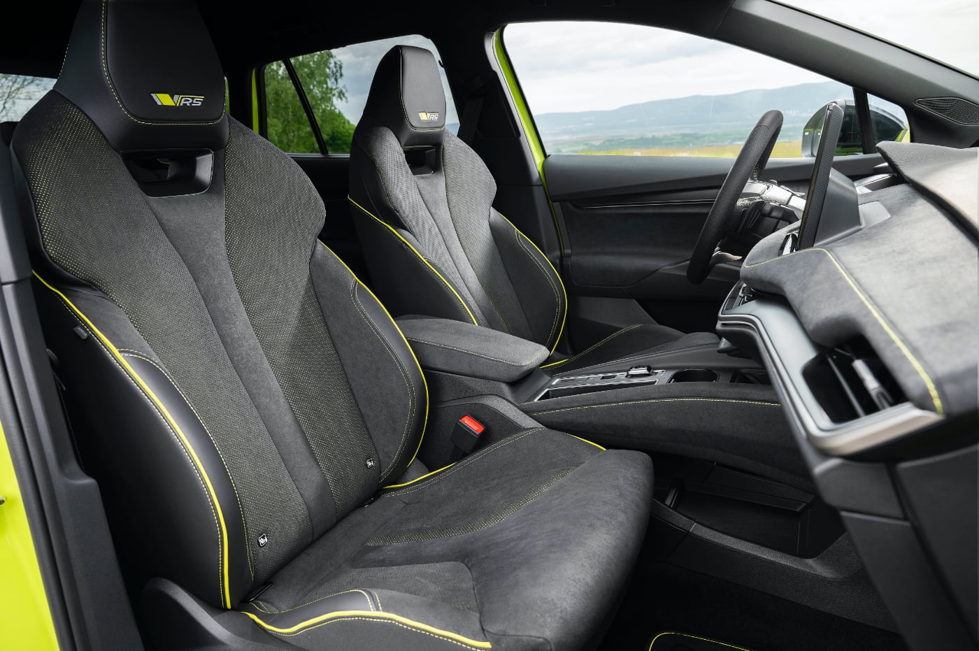 El equipamiento de serie del Skoda Elroq RS es muy completo e incluye asiento del conductor con función de masaje y ajuste eléctrico, chasis adaptativo DCC, faros LED Matrix y pilotos LED con intermitentes dinámicos y llantas de aleación exclusivas, que pueden ser, previo pago, de hasta 21".