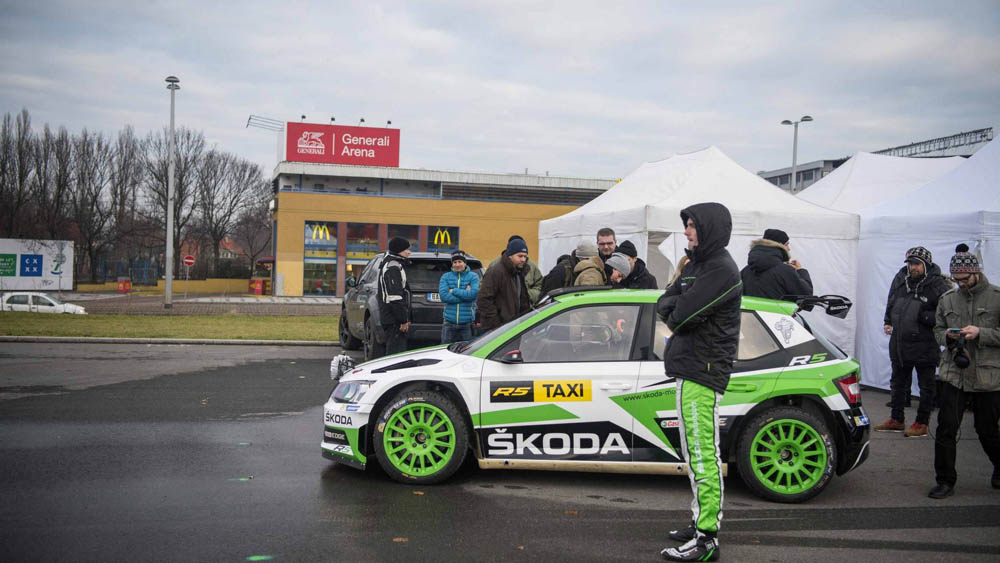 Lo copilotos, que han tomado prestado el asiento habitual de Pavel Dresler, han tenido que cantar las notas a Kopecký, describir la etapa del rallye y accionar el limpiaparabrisas. "Conducir un Skoda Fabia R5 a través de la ciudad de Praga realmente ha sido una experiencia única. Afortunadamente, nadie ha tenido problemas estomacales. Sin embargo, estaba bien preparado: tenía bolsas para vómitos con los colores de Skoda", ha manifestado riéndose Jan.