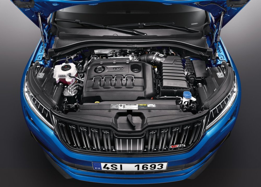 Bajo el capó, Skoda ha dispuesto un poderoso motor diésel 2.0 BiTDI con doble turbocompresor que entrega una potencia de 240 CV y 500 Nm de par, el cual ya comparte con el Volkswagen Tiguan (prueba), entre otros modelos del grupo alemán. Asociado a una transmisión automática DSG de siete relaciones que canaliza la potencia al asfalto a través de un sistema de tracción total, el Skoda Kodiaq RS pasa de cero a 100 km/h en 7 segundos y alcanza una velocidad máxima de 220 km/h, cifras combinadas con un consumo medio de 6,0 litros a los 100 km y unas emisiones de 157 gr/km.