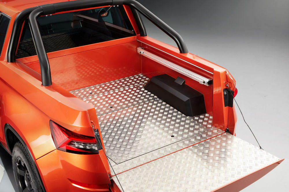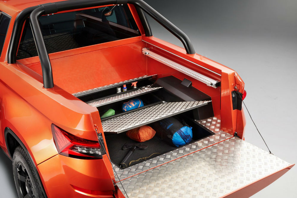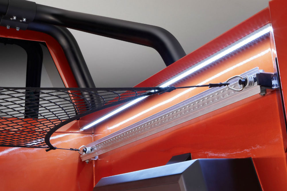 La que salta a la vista es el corte de la carrocería, eliminando las puertas traseras y acortando las delanteras, para crear una caja de carga abierta, con el interior cubierto de planchas de aluminio, red superior para asegurar la carga e incluso un compartimento de almacenaje debajo del suelo.