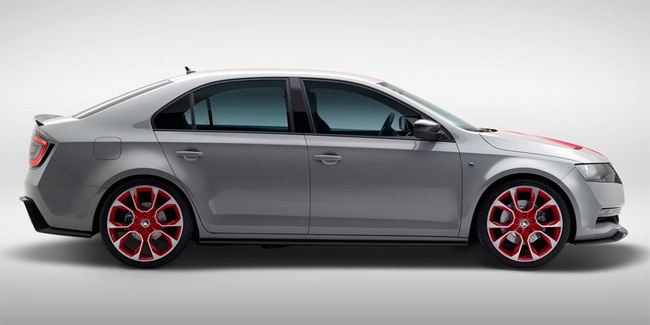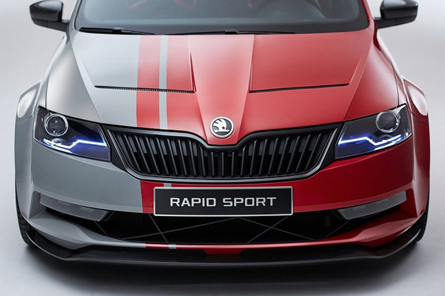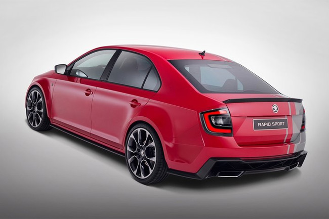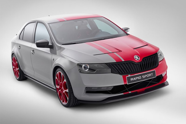 El nuevo Rapid SPORT lucirá una carrocería pintada en los colores metalizados ‘rojo fuego’ y ‘gris acero’. El parachoques delantero contará con un pequeño ‘labio’ en la parte inferior así como unas entradas de aire de mayores dimensiones. Las llantas de aleación de 19 pulgadas están embutidas en unos pasos de rueda ensanchados con respecto al Skoda Rapid convencional.