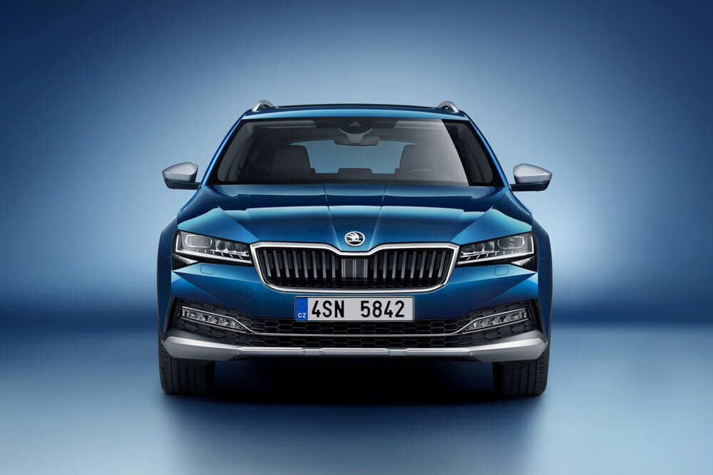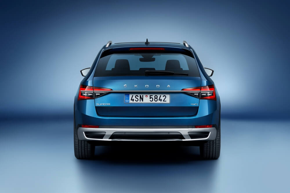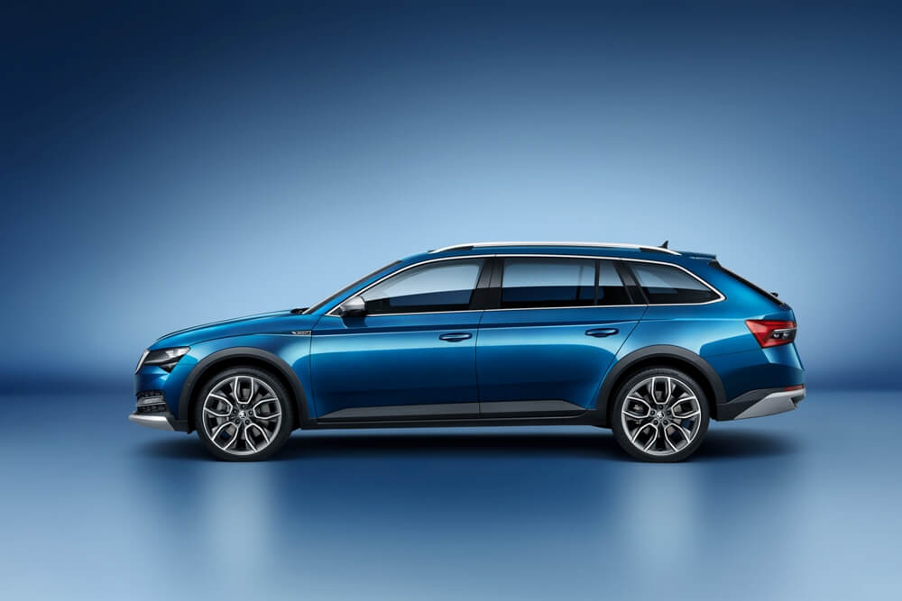 El nuevo Superb Scout presenta una apariencia robusta y elegante. Integra una parrilla delantera rediseñada que comparte algunos rasgos de diseño con el nuevo Skoda Superb Sportline. También son nuevos los parachoques con inserciones de aluminio para proteger las secciones inferiores, barras longitudinales en el techo y carcasas de los espejos retrovisores en aluminio. El conjunto lo completa unas llantas Braga de 18 pulgadas que pueden ser reemplazadas por unas llantas Manaslu de 19 pulgadas exclusivas.