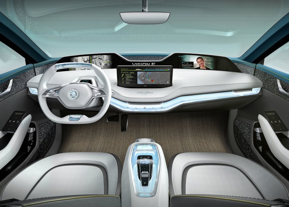 Por otro lado, el interior se beneficia de unas nuevas pantallas HMI digitales capacitivas con diseño en efecto vídrio que incluye funciones como el control gestual, el control por voz, el registro visual, monitoreo del pulso cardíaco y el detector de fatiga, así como todas las funciones de un sistema multimedia. Además, avanzados sistemas de asistencia a la conducción se dan lugar en el Vision E de Skoda, como el nuevo Traffic Jam Assist para los atascos, conducción autónoma en autopista y asistente para el aparcamiento automático, entre otros.