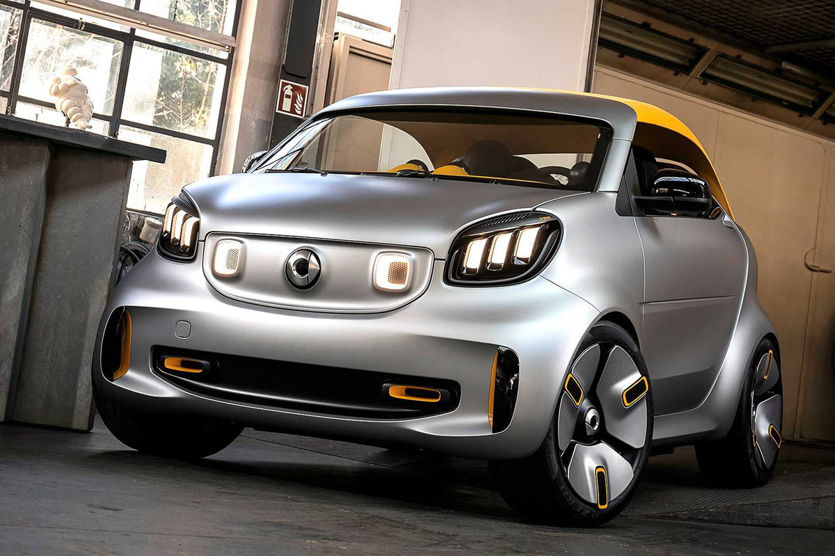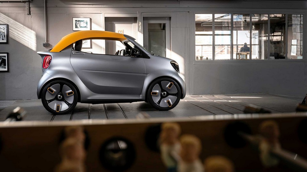 Partiendo de este, han evolucionado el diseño un poco más para el smart forease+ Concept, que ahora luce una imagen de verdadero speedster urbano y está equipado con un techo de lona de color naranja. Este último, según asegura smart, es muy resistente y por tanto, apto para soportar las inclemencias meteorológicas durante todas las estaciones del año. Además, se puede desmontar rápidamente para circular a cielo abierto.