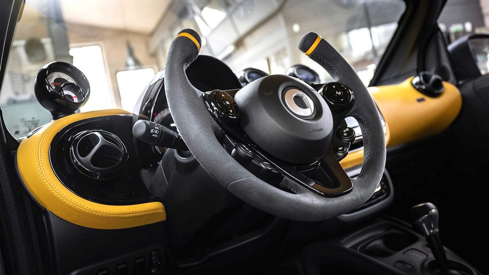 En el habitáculo, lo más destacado es la introducción de un nuevo volante recortado por su parte superior y la implementación de pequeñas pantallas ubicadas en pequeños soportes sobre el salpicadero por donde normalmente expulsa el aire el sistema de climatización. Y aunque no han revelado las especificaciones técnicas, sabemos que el smart forease+ Concept está construido sobre la base del smart fortwo cabrio electric drive, por lo que suponemos que dispondrá de un motor eléctrico de 80 CV y una batería de 17,6 kWh.