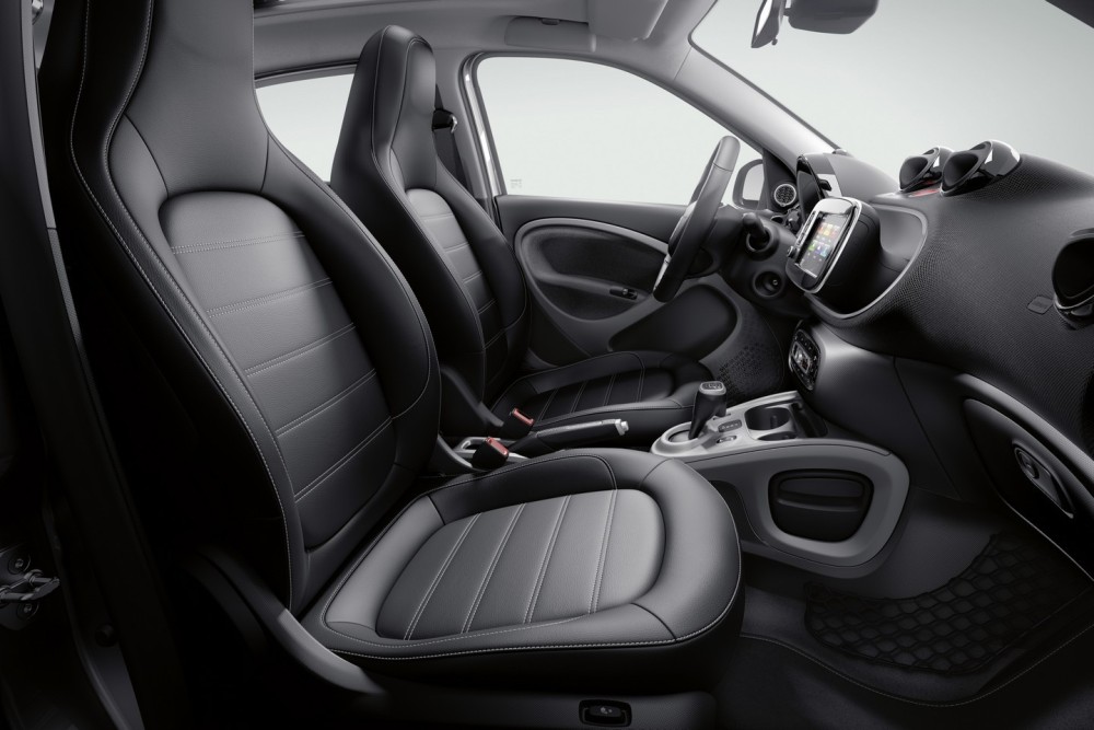 Este mismo paquete incluye un volante de tres radios con nuevos pespuntes y un bisel de color antracita. Los pedales de acero inoxidable cepillado con tacos de goma, así como la palanca de cambios y la del freno de mano firmadas por Brabus. El precio oficial para Alemania es de 29.950 euros, mientras que los paquetes son 1.900 euros para el Fortwo y 2.000 euros para el smart Forfour.