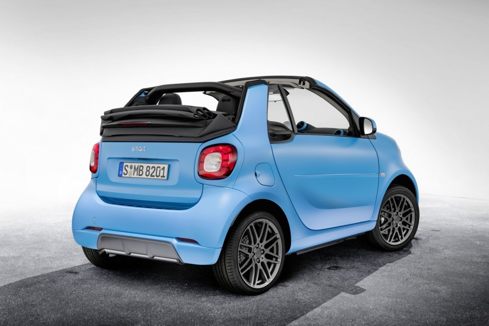 El exterior recibe cambios con el paquete Brabus Sport como un spoiler trasero pintado en color carrocería, un nuevo parachoques trasero y un difusor terminado en gris mate. La suspensión deportiva de serie rebaja la altura del smart Fortwo Cabrio en 10 mm y dispone de llantas Monoblock Brabus de 16 y 17 pulgadas para los ejes delantero y trasero, respectivamente.