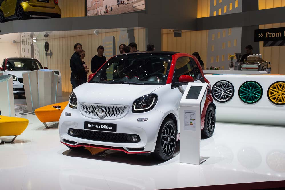 Pero el smart Ushuaïa 2016, que fue presentado en un evento multitudinario en el Palacio de Correos madrileño, también adopta de serie el acabado ‘passion’ combinado con los paquetes deportivo y premium con tridion en color rojo y carrocería en blanco cristal, que contrasta con los espejos retrovisores exteriores y líneas de contorno en rojo. La suspensión es deportiva, las llantas son de ocho radios y están pintadas en negro, el salpicadero acoge relojes de instrumentación adicionales y las luces diurnas están formadas por LED.