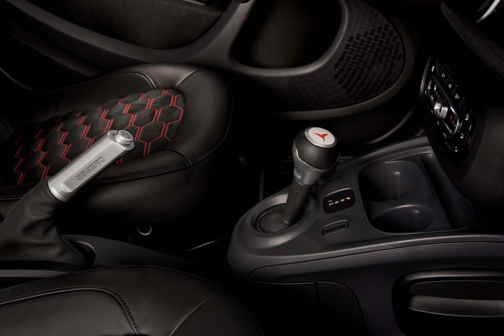 La colaboración entre smart y Ushuaïa Ibiza Beach Hotel sigue dando sus frutos. Con la nueva generación del smart fortwo llega una nueva edición limitada, aunque esta vez con equipamiento exclusivo diseñado por Brabus, como el spoiler delantero, el difusor trasero, los estribos laterales, los pedales deportivos y la palanca de freno de mano, estos dos últimos elementos con la firma del preparador alemán. Y es que desde Francia, país donde se fabrica, viaja hasta Alemania, donde la compañía germana monta estos elementos, además de la tapicería de cuero negro con tela y costuras en color rojo y el logotipo Ushuaïa en el reposacabezas, el volante deportivo con levas, también con costuras en el mismo tono, y las molduras en el salpicadero, cómo no, en rojo.