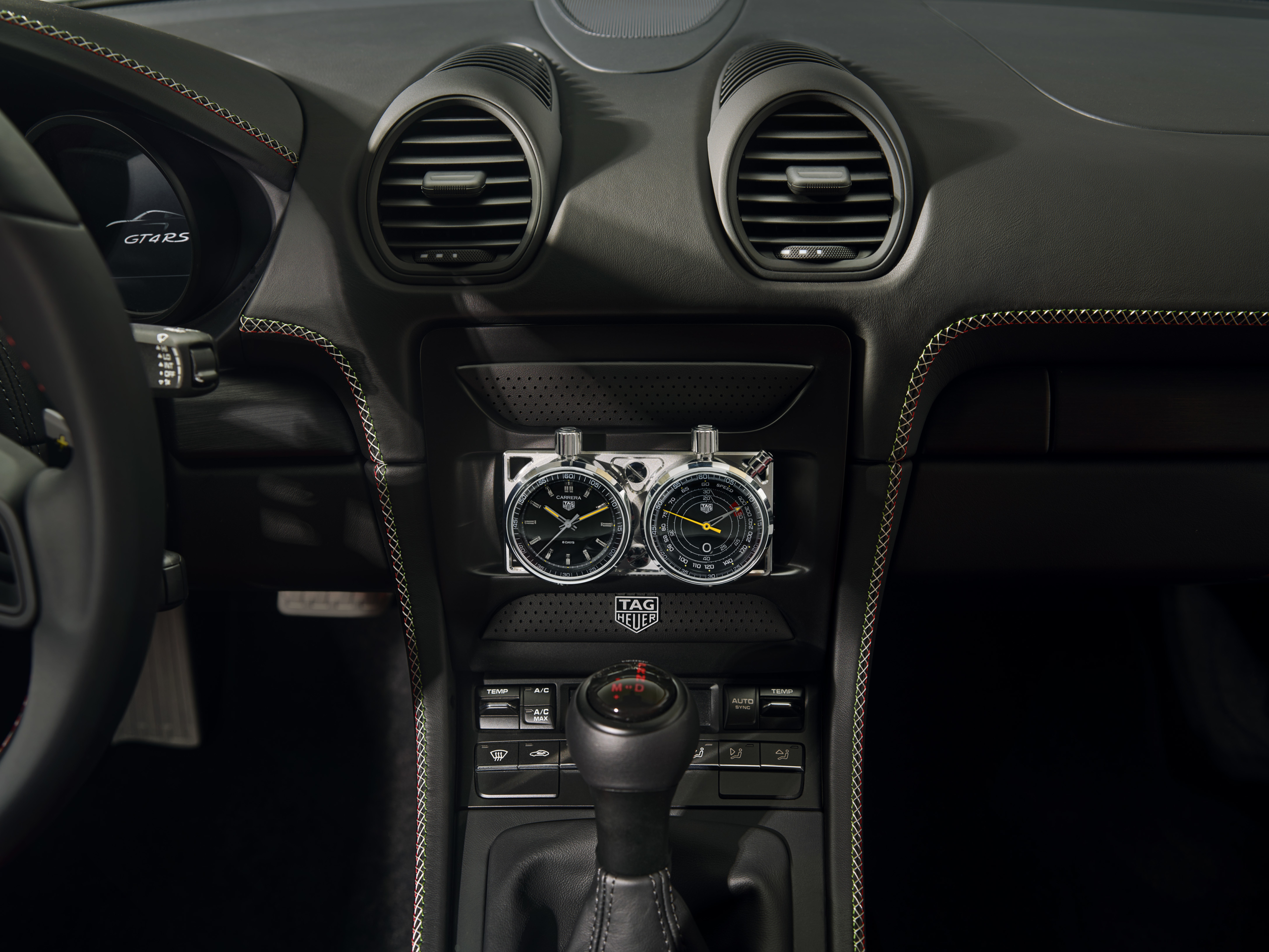 Una característica especial del vehículo con el número de competición 154 es el módulo de cronómetro TAG Heuer en la consola central. Este componente fue diseñado y fabricado por TAG Heuer especialmente para el proyecto y no se puede comprar.