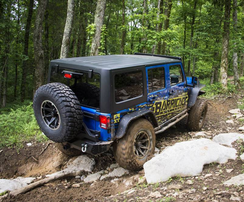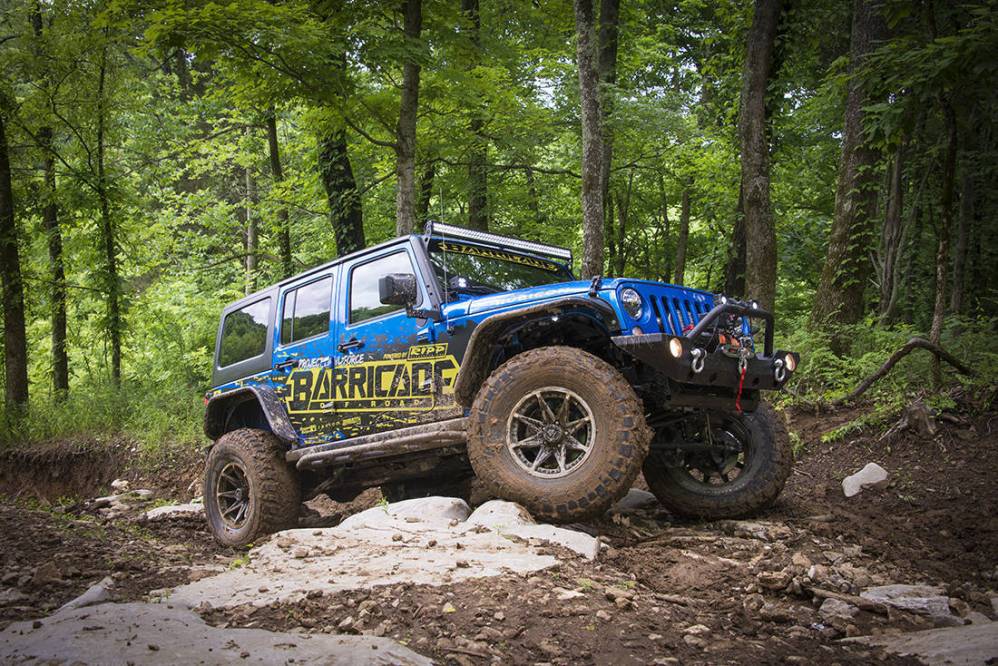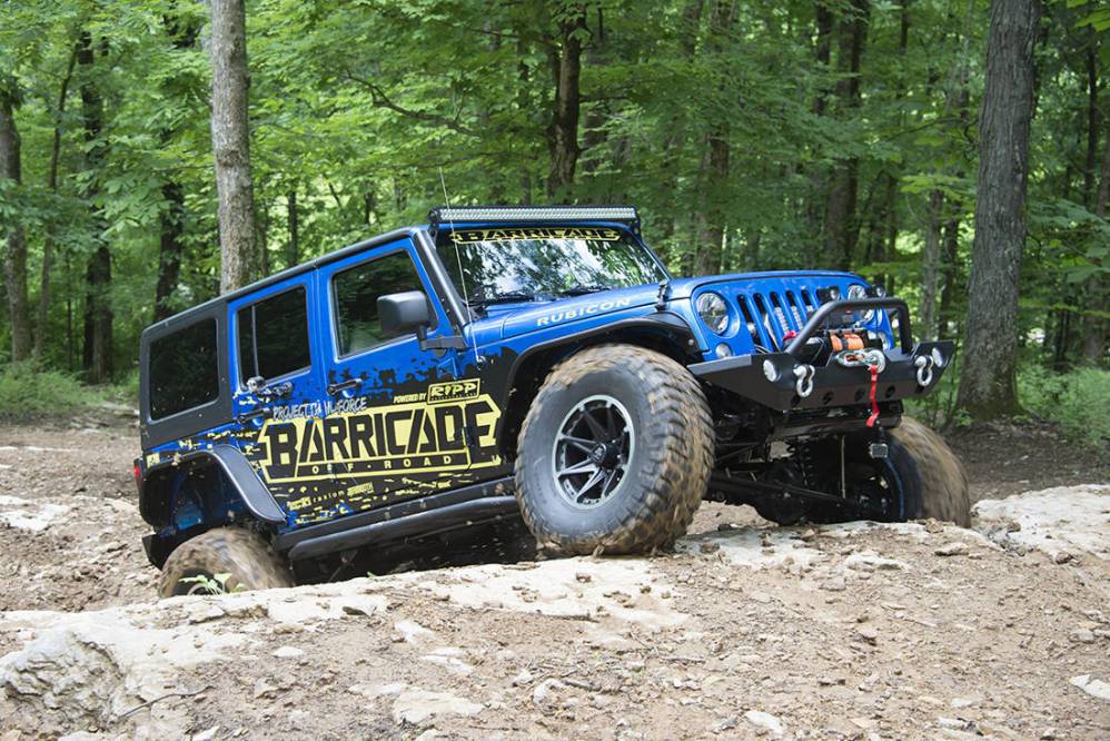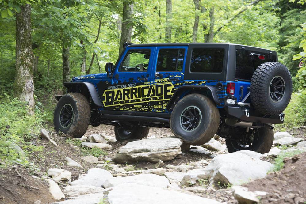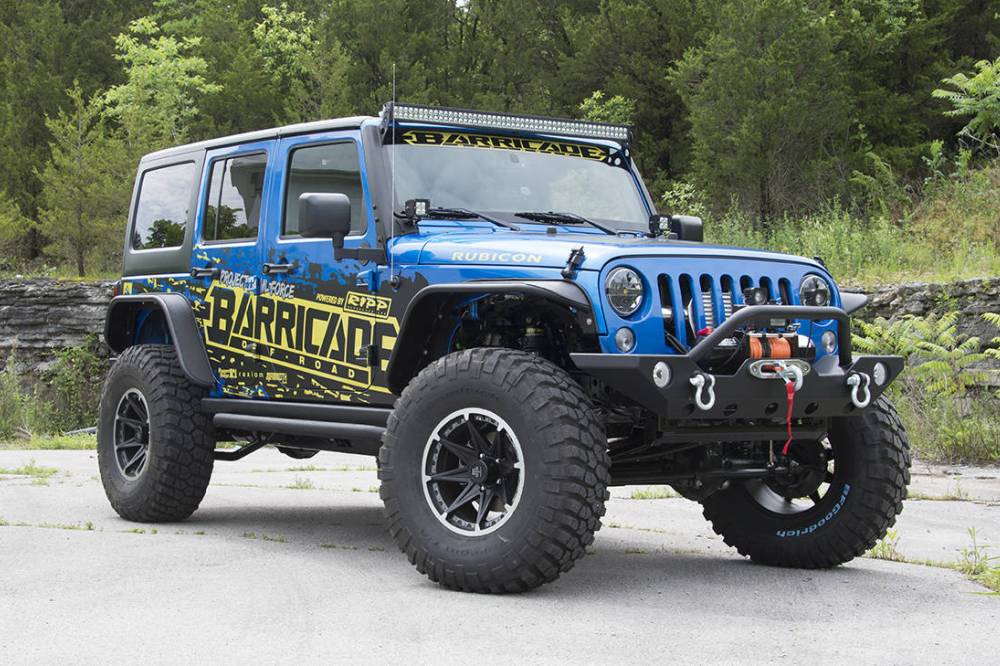 Comenzando por la lista de modificaciones que ha sufrido este Jeep Wrangler Rubicon se encuentra el kit para de suspensión para elevar la carrocería firmado por Rock Krawler, Barricade ha proporcionado los bajos, aletas recortadas y paragolpes cortos para mejorar los ángulos de ataque y salida. La iluminación ha sido optimizada gracias a los faros supletorios instalados en la defensa delantera, pilares A y una barra de luz LED en la parte superior del cristal delantero. Rugged Ridge firma el interior con nuevos asientos y protecciones para el suelo.