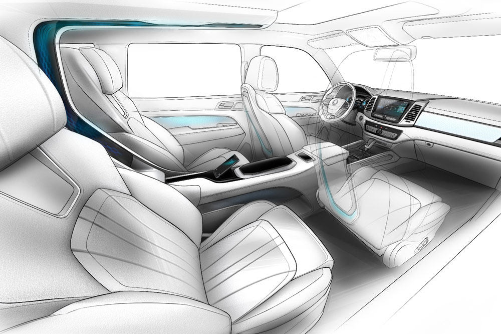 En el interior del SsangYong Concept LIV-2 encontramos un estilo y carácter propio con asientos individuales y una consola central completamente conectada con los pasajeros de las plazas traseras. Los asientos son reclinables e incluyen función masaje al toque de un botón. En términos de conectividad, el SUV de la firma surcoreana emplea un sistema de infoentretenimiento con pantalla central de 9,2 pulgadas y monitores de 10,1 pulgadas en cada uno de los reposacabezas delanteros, ofreciendo conexión Wi-Fi y compatibilidad con Apple CarPlay y Android Auto.