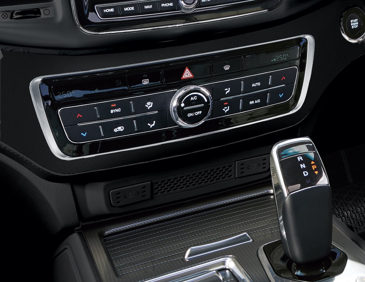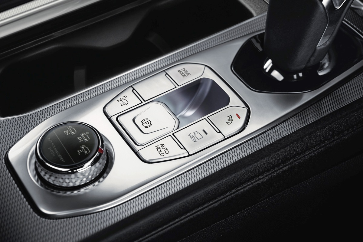 La otra gran novedad la encontramos en la caja de cambios. La transmisión automática de ocho velocidades está desarrollada por Hyundai Transys, compañía que suministra cajas de cambio a modelos de Genesis, Hyundai y KIA. Las relaciones de la transmisión se pueden activar y/o cambiar a través de controles electrónicos sin ningún tipo de vínculo mecánico entre la palanca de cambios y la transmisión. A su vez, el grupo motor-transmisión se conecta a un sistema de tracción a las cuatro ruedas. Cuenta con una capacidad de remolque de 3.500 kg e introduce el sistema Trailer Sway Control (TSC) para la conducción con remolque.