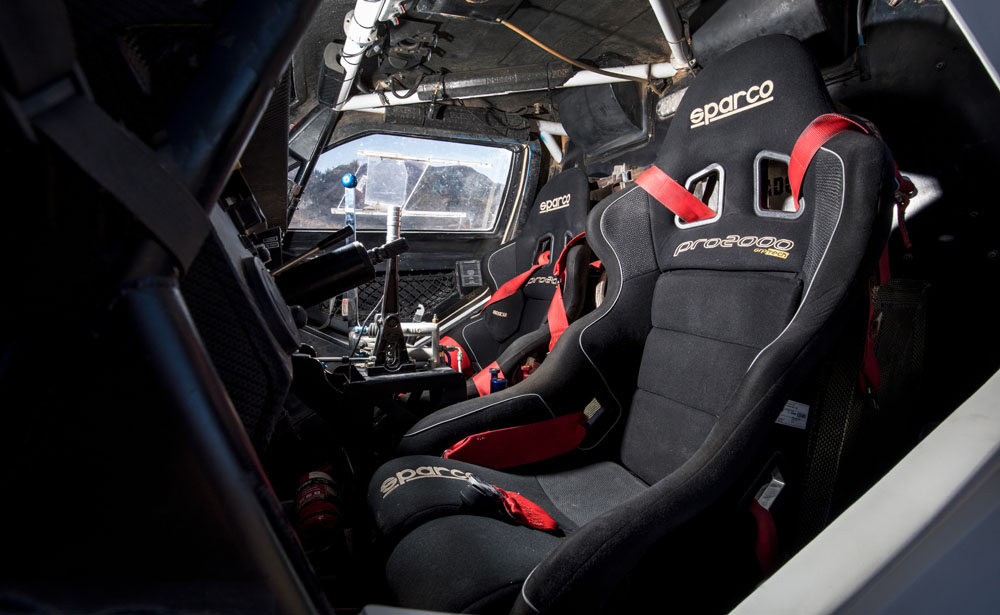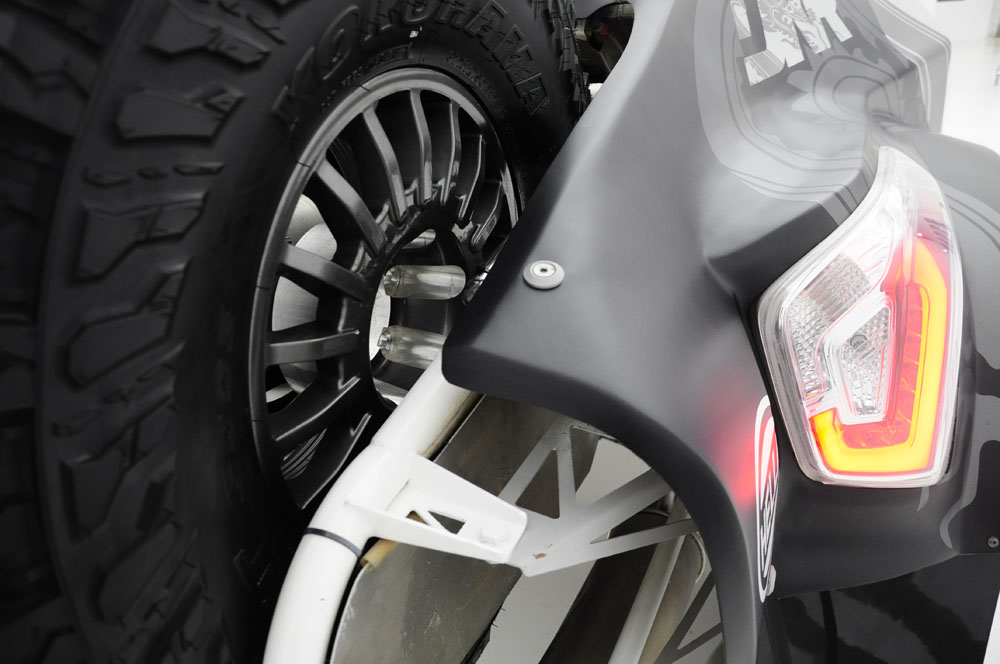 Para ello cuentan con un Buggy de chasis multitubular de cromo-molibdeno con soldaduras TIG y jaula integrada cuya potencia, 405 CV a 4.200 rpm generados de un V8 de gasolina -bloque y culata de aluminio- ubicado en posición trasero-central, es enviada al eje trasero a través de un cambio de convertidor de par Fortin de 5 velocidades con accionamiento secuencial. Equipa suspensión King Shocks de 400 mm de recorrido, de doble brazo en el eje delantero y de brazo tirado en le trasero; y neumáticos Yokohama Geolandar M/T G003 en medida 37 pulgadas montados sobre llantas de 17 pulgadas. Tiene una longitud de 4.800 mm, una anchura de 2.200 mm y una altura de 1.800 mm.