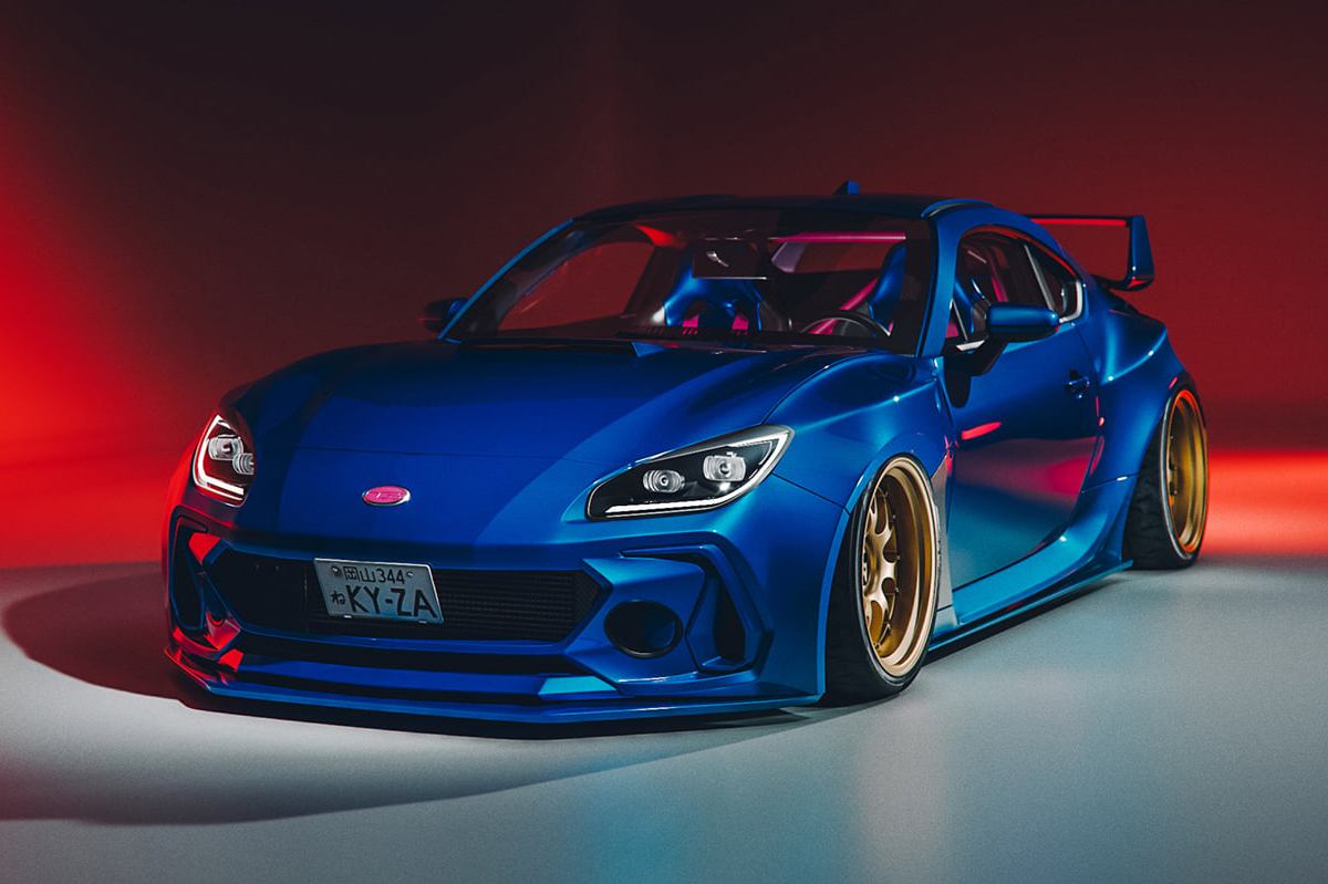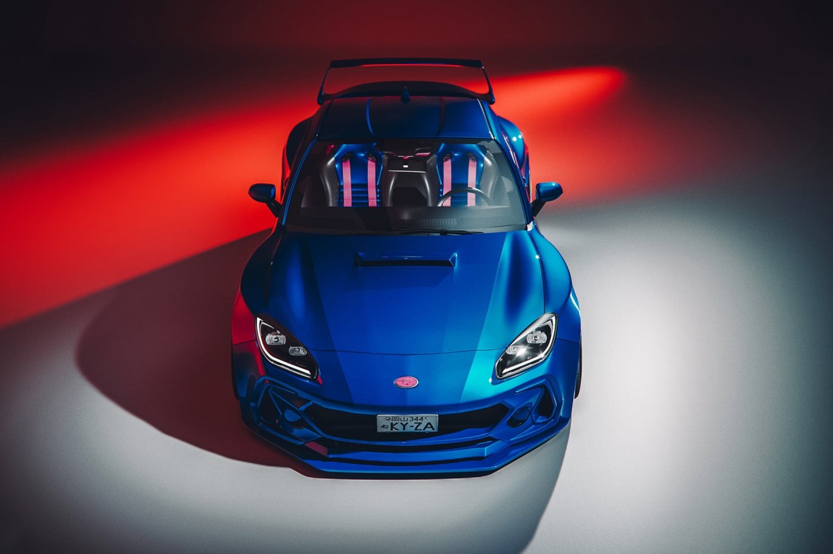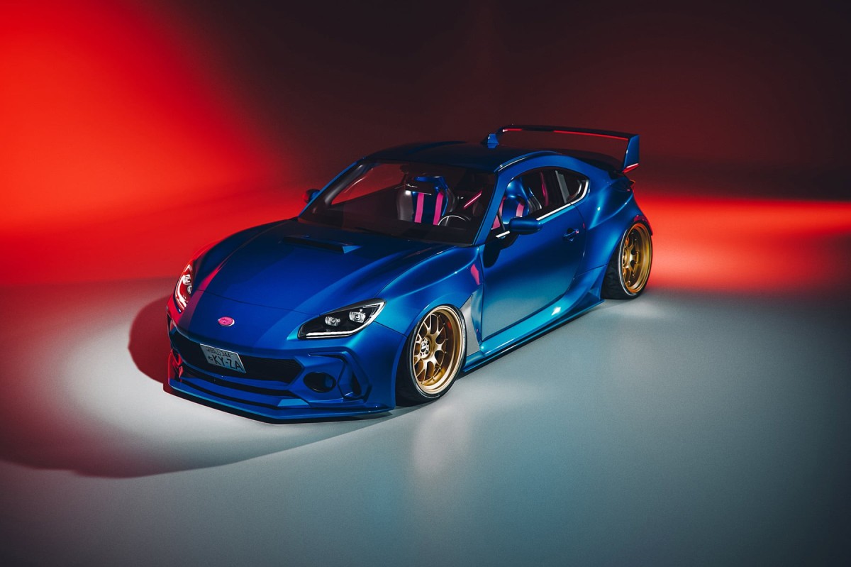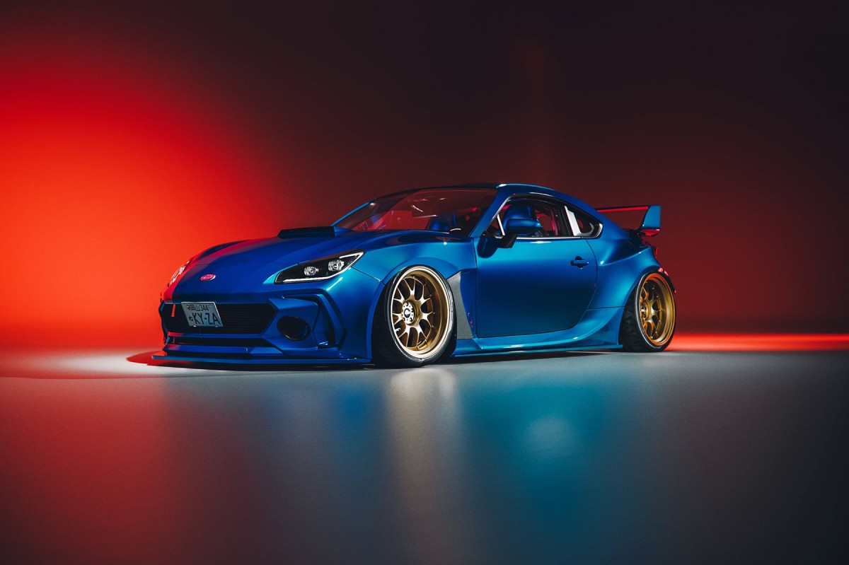 Basado en el nuevo Subaru BRZ 2021, esta interpretación digital de la variante STi incluye un imponente kit de carrocería. Nuevos parachoques, guardabarros más anchos, taloneras, un tren trasero ensanchado y un alerón al estilo Impreza WRX STi. Todo ello, terminado en el mítico azul Subaru sobre un conjunto de llantas BBS en dorado. Un sistema de frenos deportivos, una suspensión específica y un interior aligerado con buquets de competición y arneses en color rosa (otro guiño al Impreza 22B, al igual que los logotipos de Subaru).