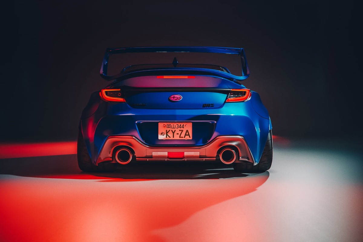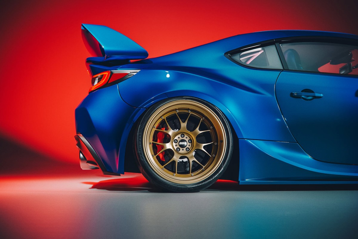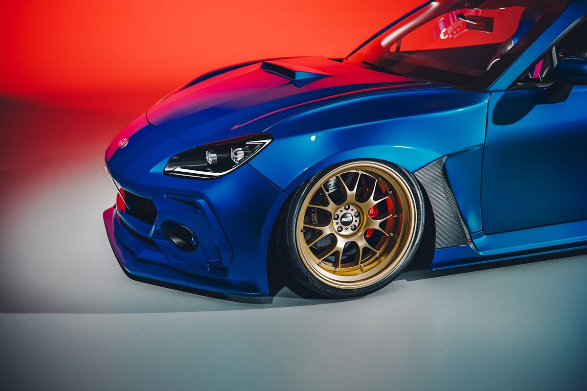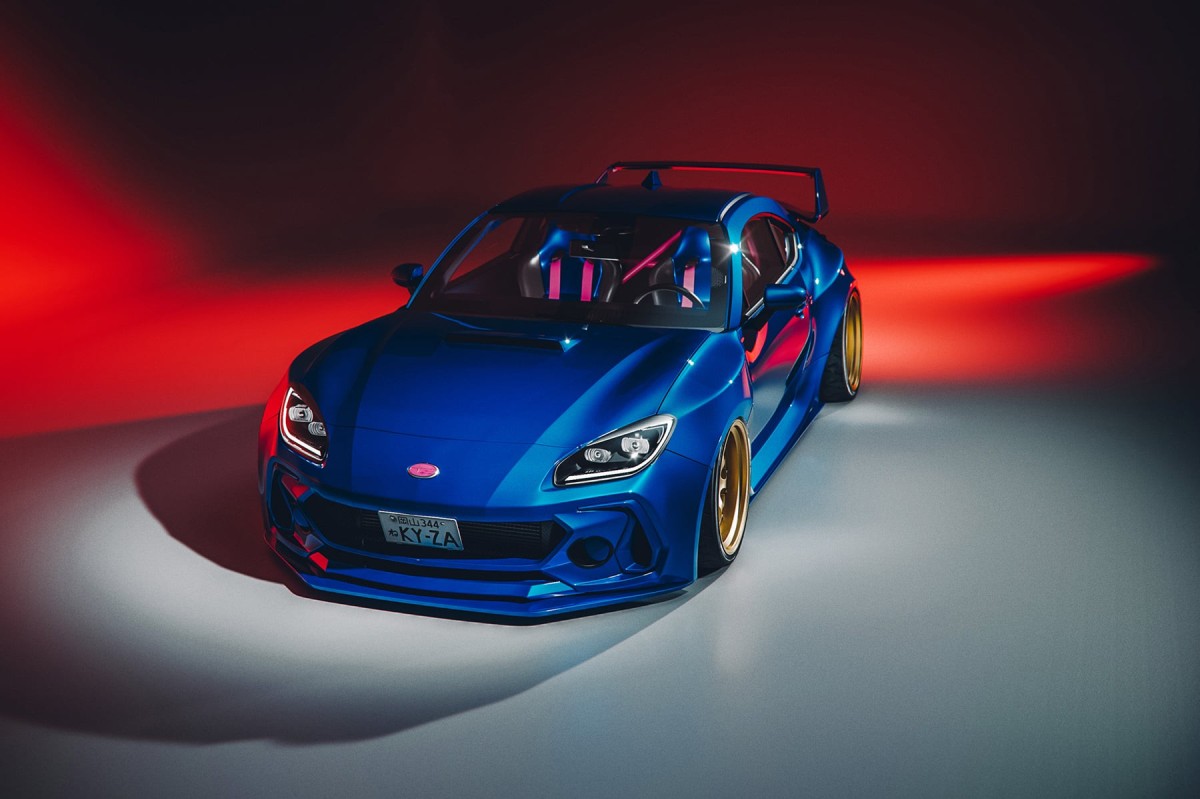 Basado en el nuevo Subaru BRZ 2021, esta interpretación digital de la variante STi incluye un imponente kit de carrocería. Nuevos parachoques, guardabarros más anchos, taloneras, un tren trasero ensanchado y un alerón al estilo Impreza WRX STi. Todo ello, terminado en el mítico azul Subaru sobre un conjunto de llantas BBS en dorado. Un sistema de frenos deportivos, una suspensión específica y un interior aligerado con buquets de competición y arneses en color rosa (otro guiño al Impreza 22B, al igual que los logotipos de Subaru).