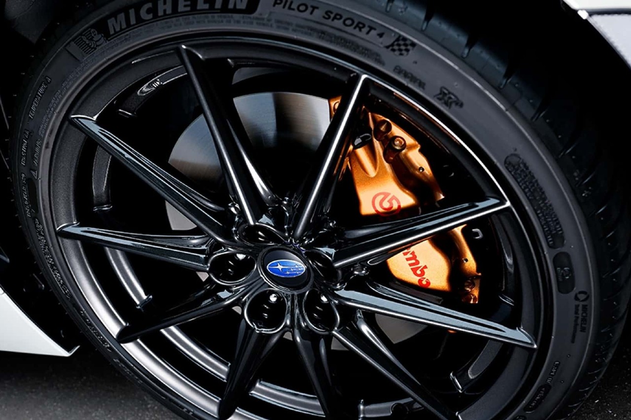 Lo importante del Subaru BRZ STI Sport, no obstante, está en los ajustes de chasis que recibe, todos ellos enfocados a mejorar su comportamiento. Tiene una suspensión más deportiva, con una puesta a punto específica y que incorpora amortiguadores delanteros Hitachi Astemo SFRD. Además, monta un sistema de frenos firmado por Brembo, con discos ventilados de 17 pulgadas mordidos por pinzas doradas.