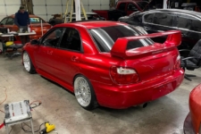 A pesar de todos los obstáculos, el vehículo está casi listo, con una parrilla delantera y un intercooler también adaptado. El propietario se decantó por una pintura rojo Soul metalizada y un juego de llantas estilo BBS. Actualmente, el “Subevo” no presenta insignias de ninguno de los fabricantes ni referencias a sus respectivos modelos.
