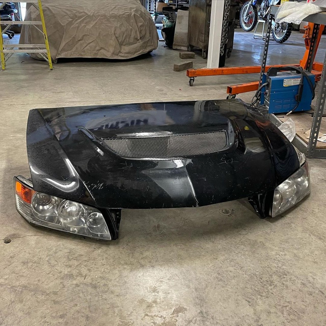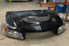 El capó casi se pudo atornillar en las bisagras originales (requirió leves modificaciones), pero el resto del frontal hubo que cortarlo y compensarlo soldando una estructura tubular. Otro problema fue el tamaño de los faros del EVO, que obligó a eliminar el aire acondicionado y el módulo del ABS originales del Subaru. Además, el Mitsubishi es ligeramente más ancho, lo que se solucionó fusionando las aletas de ambos vehículos.