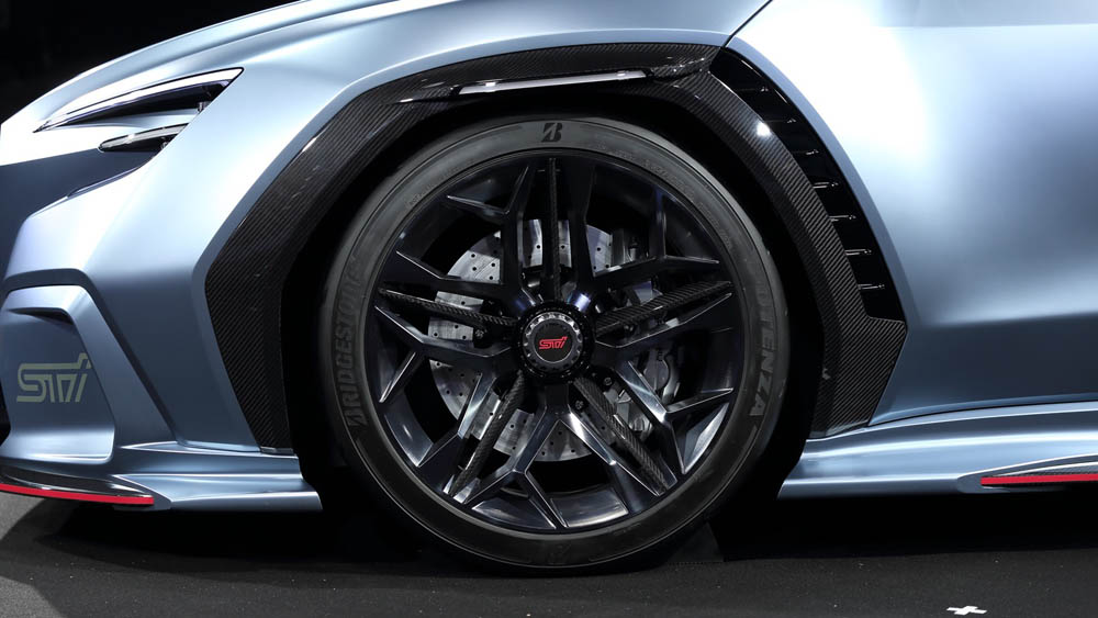 Como podrás comprobar, esta nueva creación ha nacido tomando como base el prototipo mostrado en el Tokyo Motor Show, feria celebrada en octubre de 2017, y que respondía al nombre de Viziv Performance. Y es que, como no podía ser de otra forma, la introducción de las siglas STi significan deportividad. Por este motivo exhibe una imagen más atrevida, más STi. Algunos de sus detalles han sido bañados con el color característico del departamento de altas prestaciones de la casa. Además, ahora equipa un alerón de grandes dimensiones, como debe ser, y unos paragolpes de nuevo cuño: el delantero, más agresivo, mientras que el trasero adopta un spoiler. Pero también se mantienen varios elementos, como las cuatro salidas de escape, los sobredimensionados pasos de rueda con salidas de refrigeración o las llantas de aleación monotuerca, sin olvidar las múltiples piezas fabricadas en fibra de carbono.