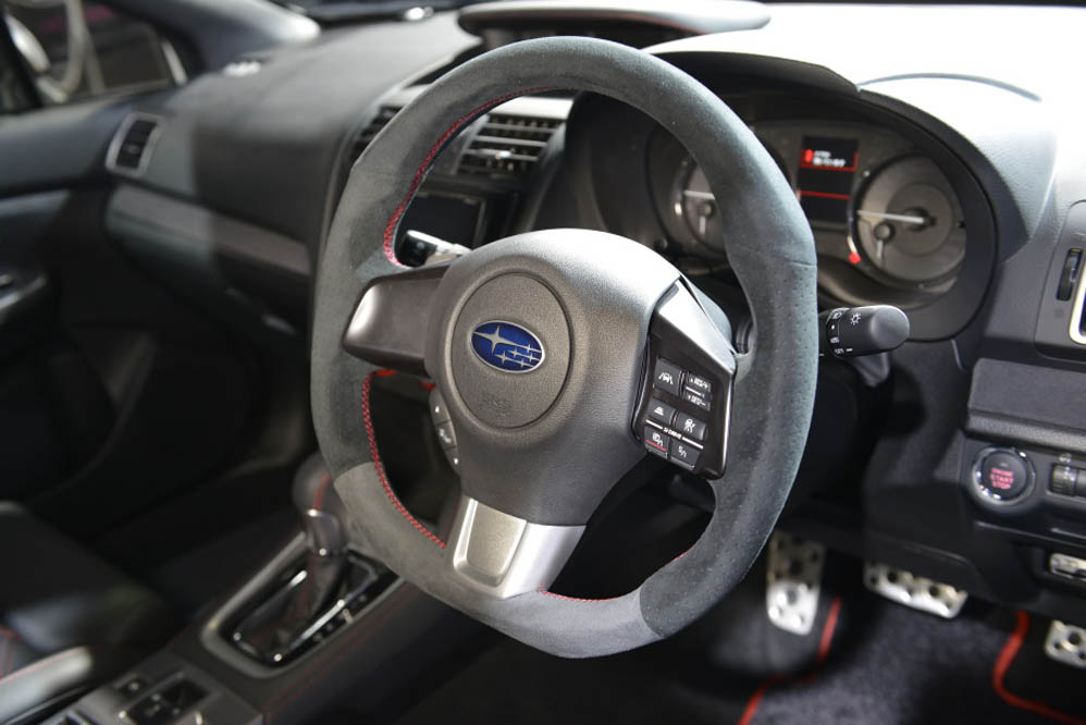 Además, esta berlina con motor de 2.0 boxer de 300 CV y 400 Nm de par equipa un volante tapizado en Alcantara con costuras rojas.