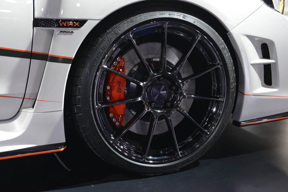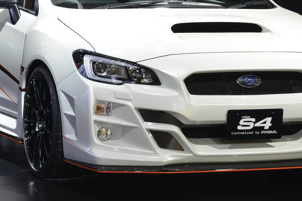El Subaru WRX S4 por Prova, que ha sido mostrado en el Salón de Tokio 2015, presenta nuevos paragolpes, faldones y un alerón posterior fijo realizado en fibra de carbono. Marcando este último elemento aerodinámico y rodeando los bajos del coche encontramos una delgada línea roja que se suma a los vinilos de los laterales. Asimismo, monta unas llantas de aleación de 20” firmadas por Enkei que van asociados a unos Michelin de altas prestaciones con medidas 245/35ZR20. De vestir la carrocería se encarga la pintura blanca perlada ‘Crystal Pearl White’.