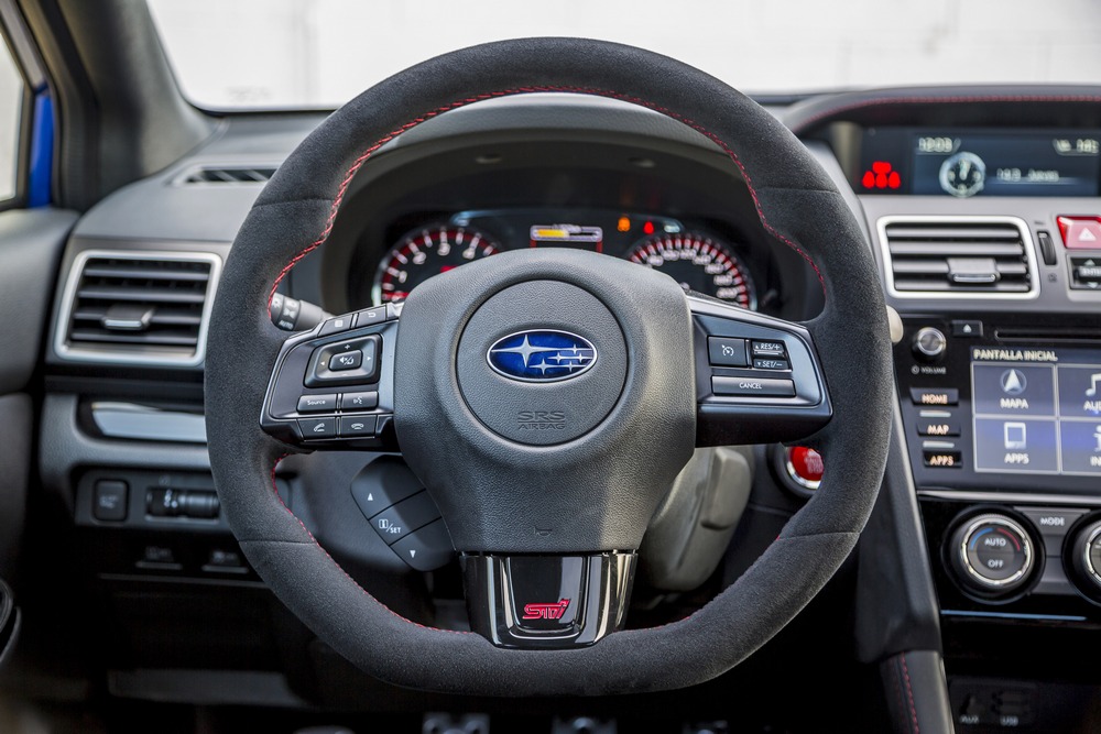 El habitáculo también presenta cambios, pues además de la placa identificativa ubicada delante de la palanca de cambios de la que ya hemos hablado, cada unidad cuenta con un volante tapizado en Alcántara, un pomo de cambio y un botón de arranque en rojo o unas alfombrillas exclusivas con detalles STI.
