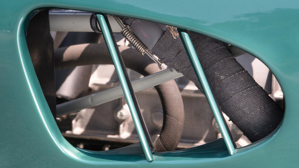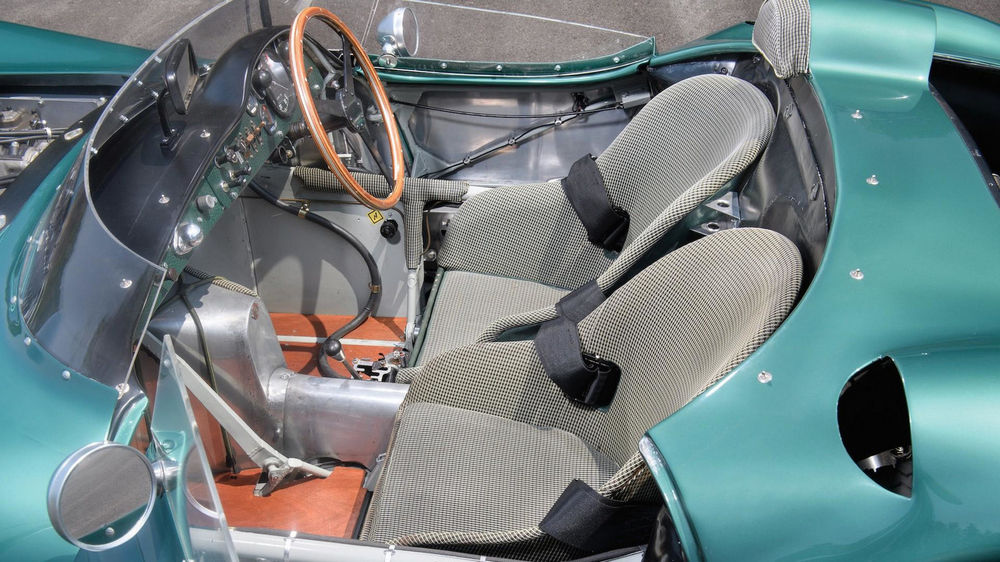 Y en el fondo no sorprende, porque este Aston Martin DBR1/1 también es uno de los clásicos de competición más bellos jamás construidos. El DBR1 fue el bólido de competición que diseñó Aston Martin para ganar en Le Mans (objetivo que lograron en 1959 con otro ejemplar de DBR1), el equivalente británico de imponentes automóviles como el Mercedes 300 SLR o el Ferrari 250 GTO. Construyeron un total de cinco coches entre 1956 y 1958 y este es el primero de ellos.