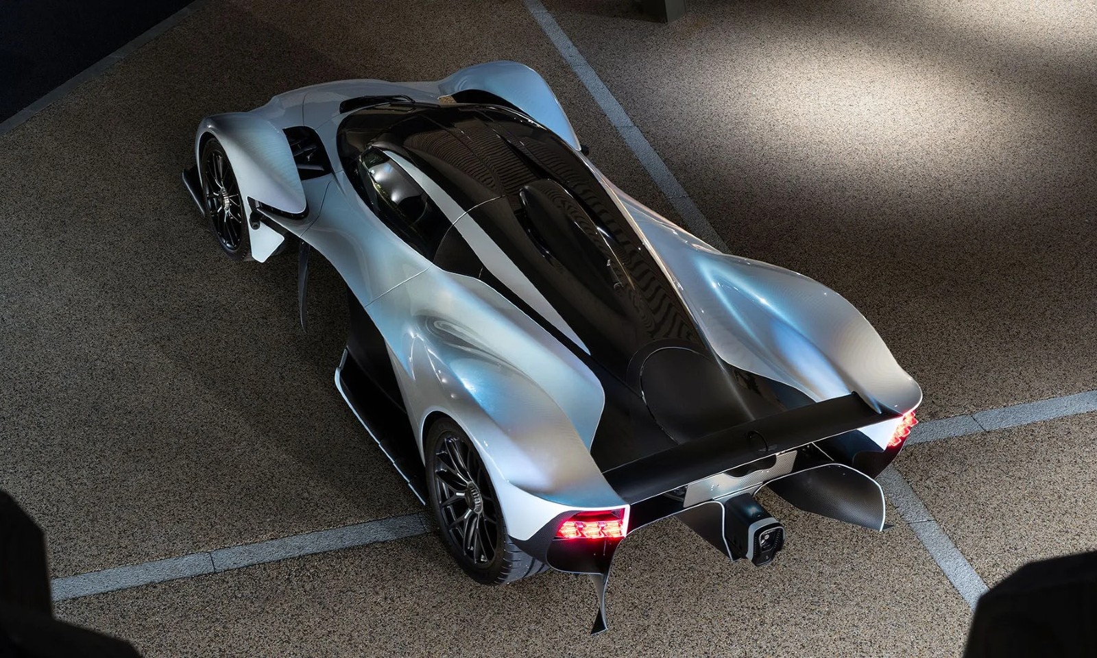 El Aston Martin Valkyrie de Daniel Ricciardo está terminado en Dichoric Dawn, también conocida como Badger Blue, una pintura que, según el ángulo desde el que se vea el coche, adquiere una tonalidad blanca o azul claro y se facturaba en 30.000 libras, unos 34.300 euros. También incluye unos gráficos a lo largo del techo, unas salidas de escape negras opcionales y carbono brillante en el techo y la cubierta del motor.