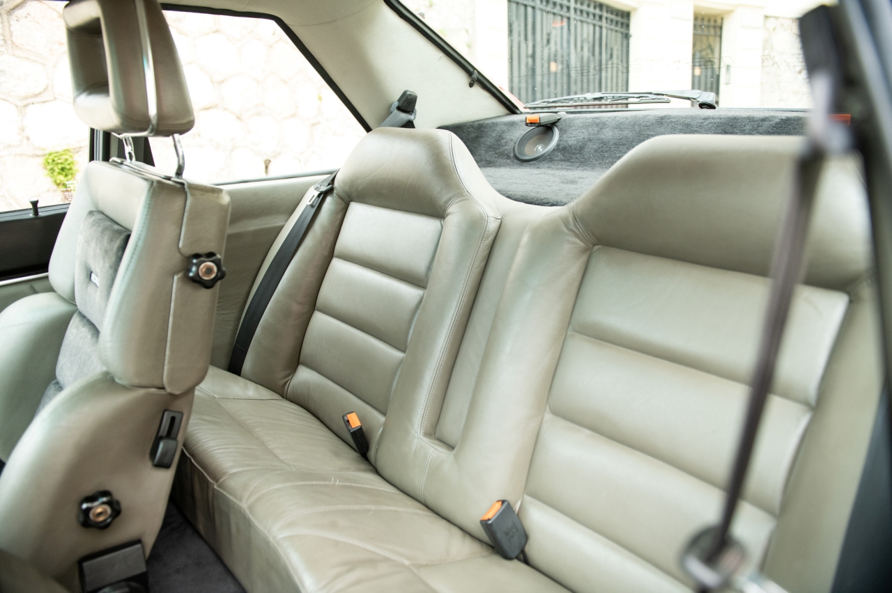 El interior cuenta con unos asientos firmados por Recaro en cuero gris y un indicador turbo que hace de carta de presentación en el habitáculo de este Audi Sport quattro de 1984. Un grupo de instrumentos muestra la temperatura del líquido refrigerante, la presión y la temperatura del aceite, y la presión del turbocompresor. Lo más curioso es que en el marcador tan solo se indica que ha cubierto 2.785 kilómetros en los últimos 38 años.