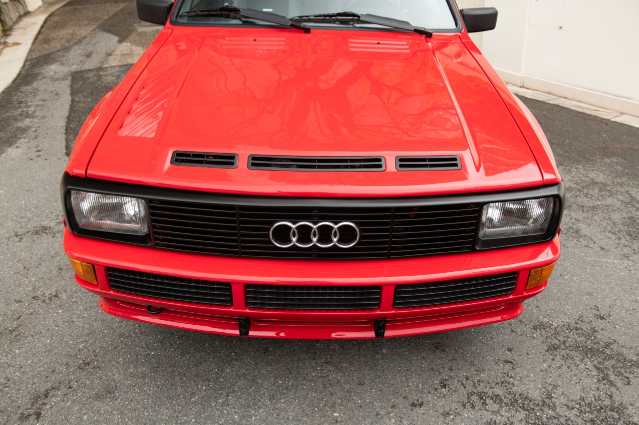 Este ejemplar se entregó a su primer propietario en mayo de 1984 a través de un concesionario de Ingolstadt. Está terminado en color rojo con revestimiento negro en los parachoques, los marcos de las puertas y el alerón trasero. Además, a esta estética le acompañan unas llantas blancas en diseño de radios múltiples.