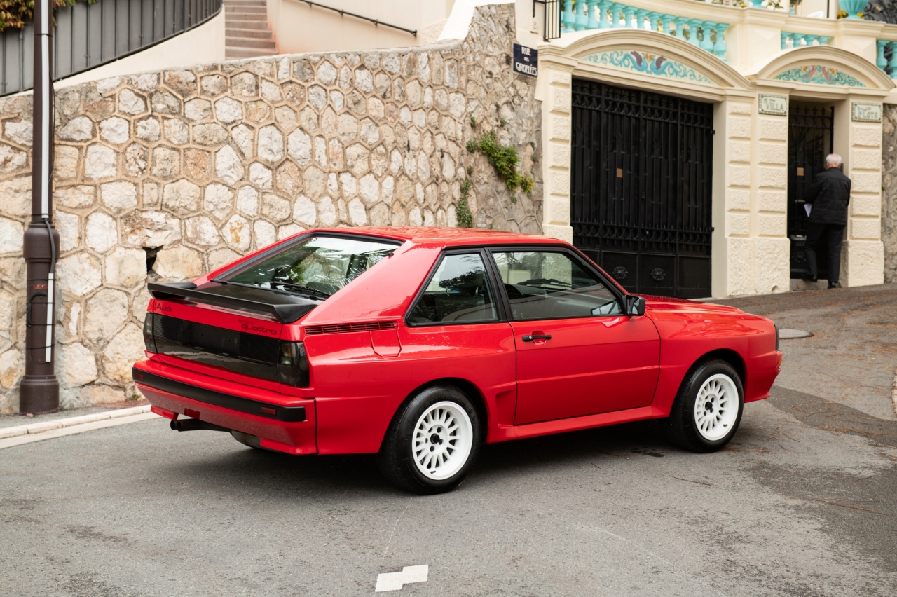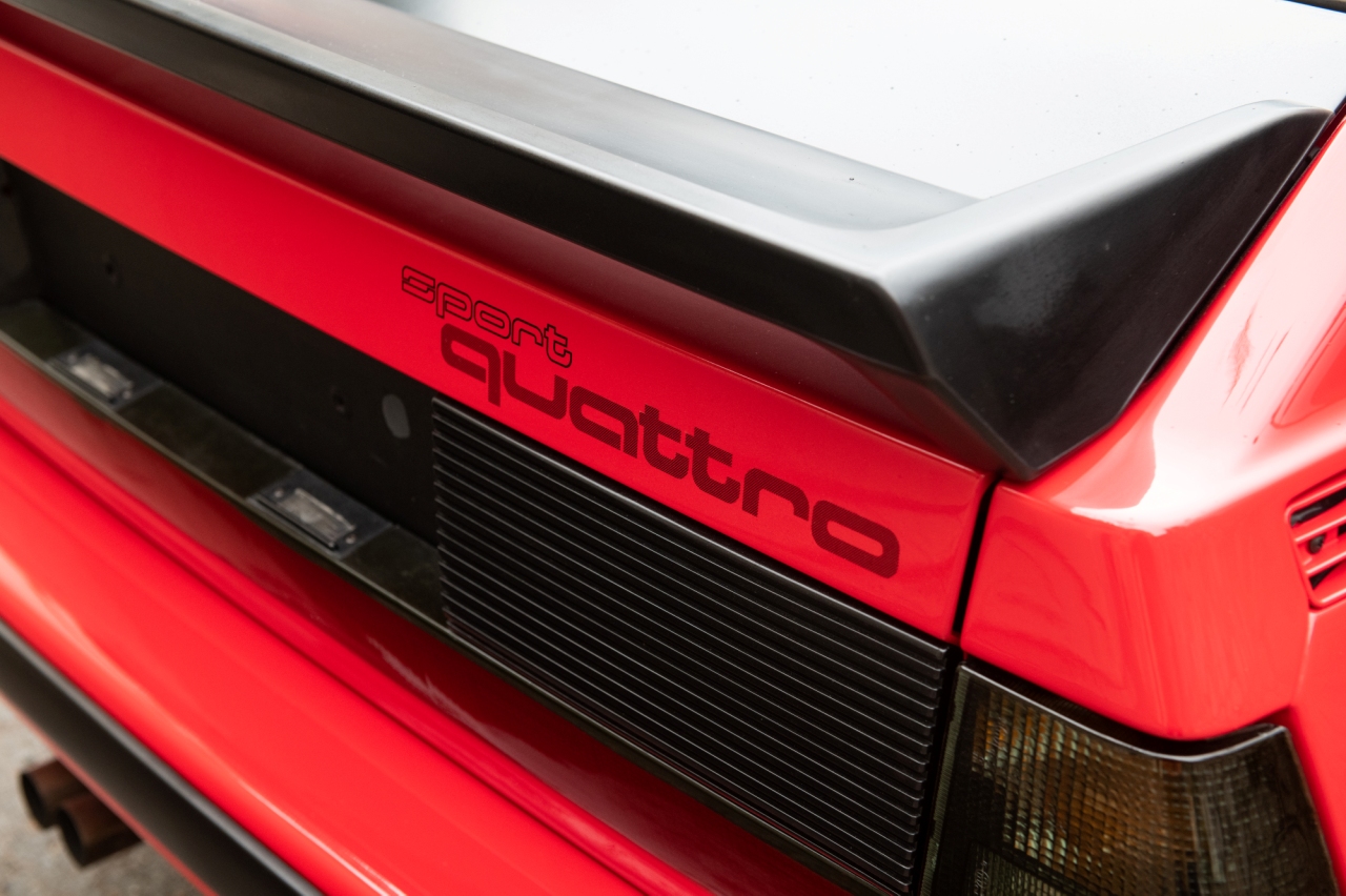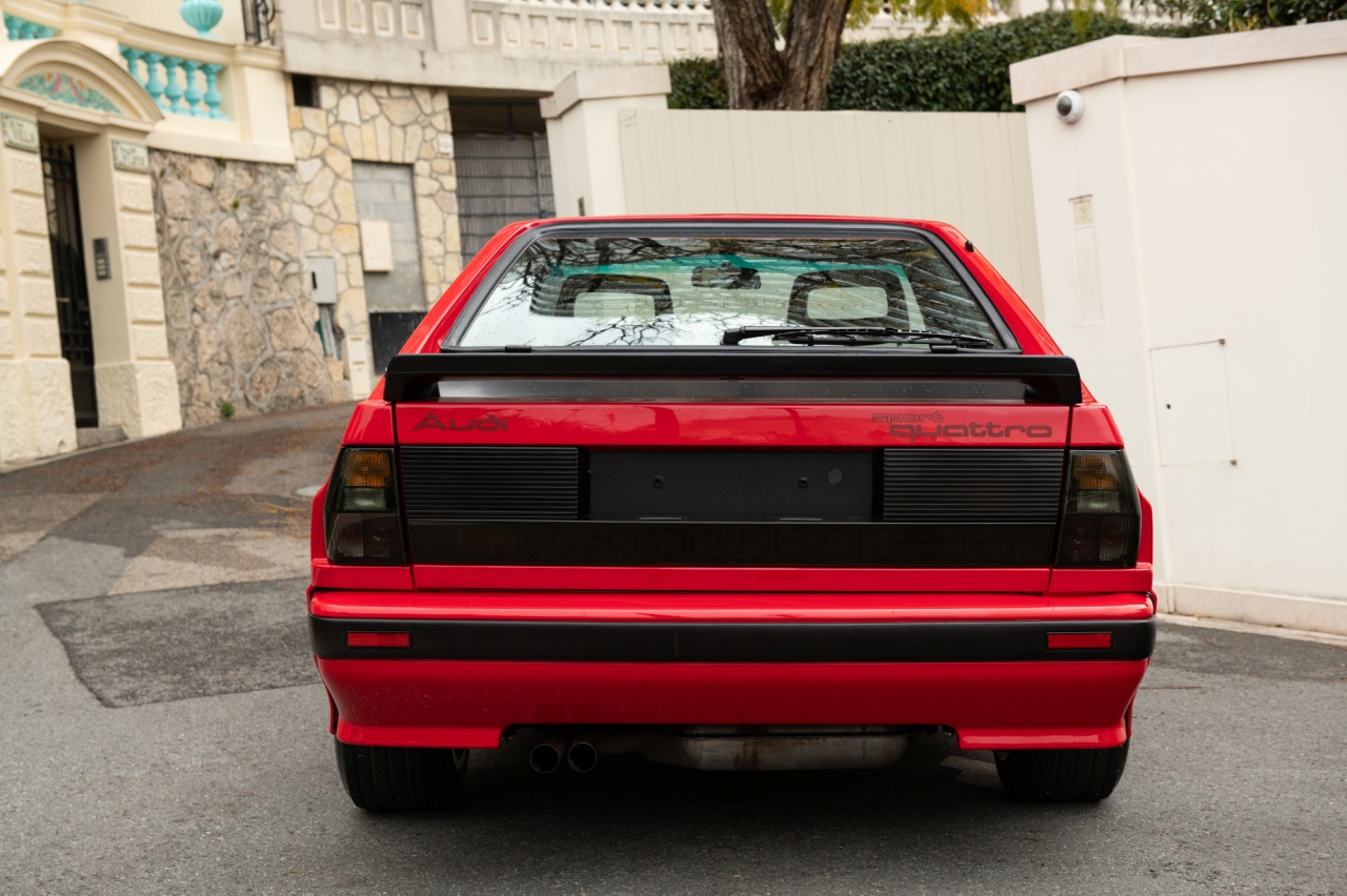 Esta unidad en una de los supuestos 164 ejemplares con especificaciones de calle que se cree que Audi entregó a clientes privados a través de distribuidores especializados. El coche se vendió en Alemania por algo más de 200.000 marcos alemanes y los compradores se llevaban un vehículo equipado con un motor de cinco cilindros y 2.1 litros con un turbocompresor y algo más de 300 CV de potencia. Integraba un sistema ABS seleccionable que permitía configurar el nivel de intrusión en la frenada, algo que está sacado directamente del mundo de la competición.