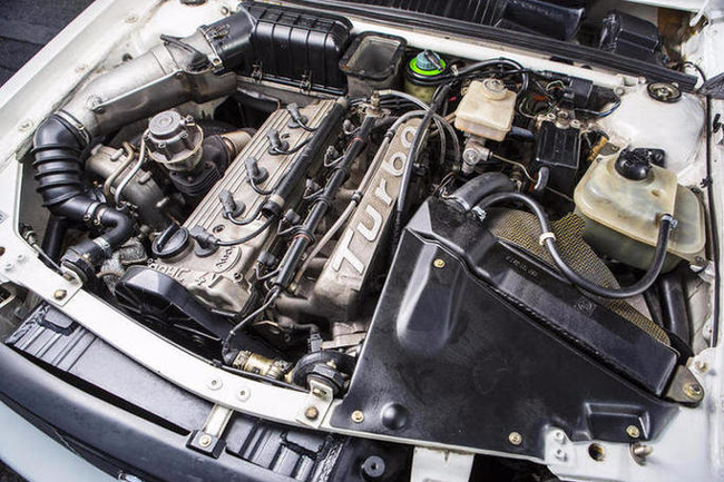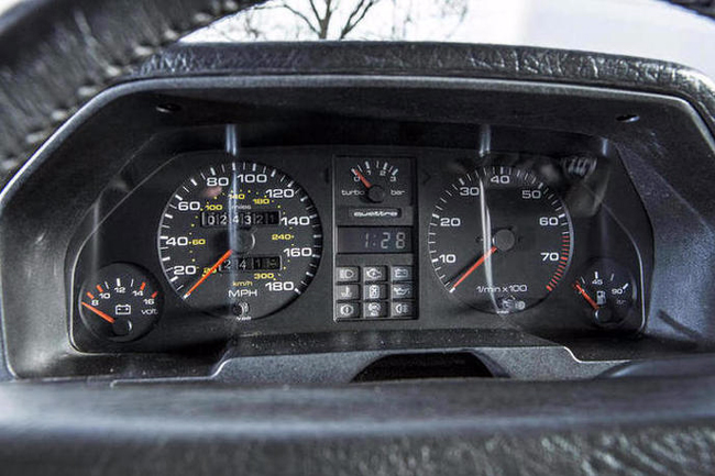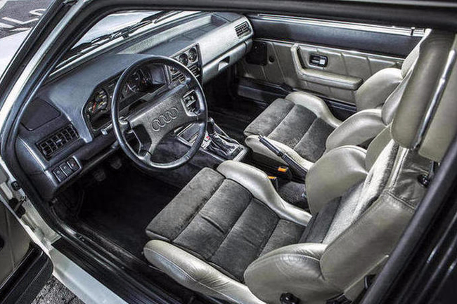 Este Sport Quattro SWB de 1985 está propulsado por el famoso motor de cinco cilindros en línea, 2.133 centímetros cúbicos, turboalimentado y que produce 302 CV de potencia máxima. Este motor está asociado a un cambio manual de cinco relaciones y al sistema de tracción total permanente quattro. Esta unidad concreta es una de las seis que originalmente fueron a parar a Reino Unido, por lo que tiene el velocímetro y el cuentakilómetros en millas (ojo que el volante sigue estando en el lado correcto, es decir, a la izquierda).