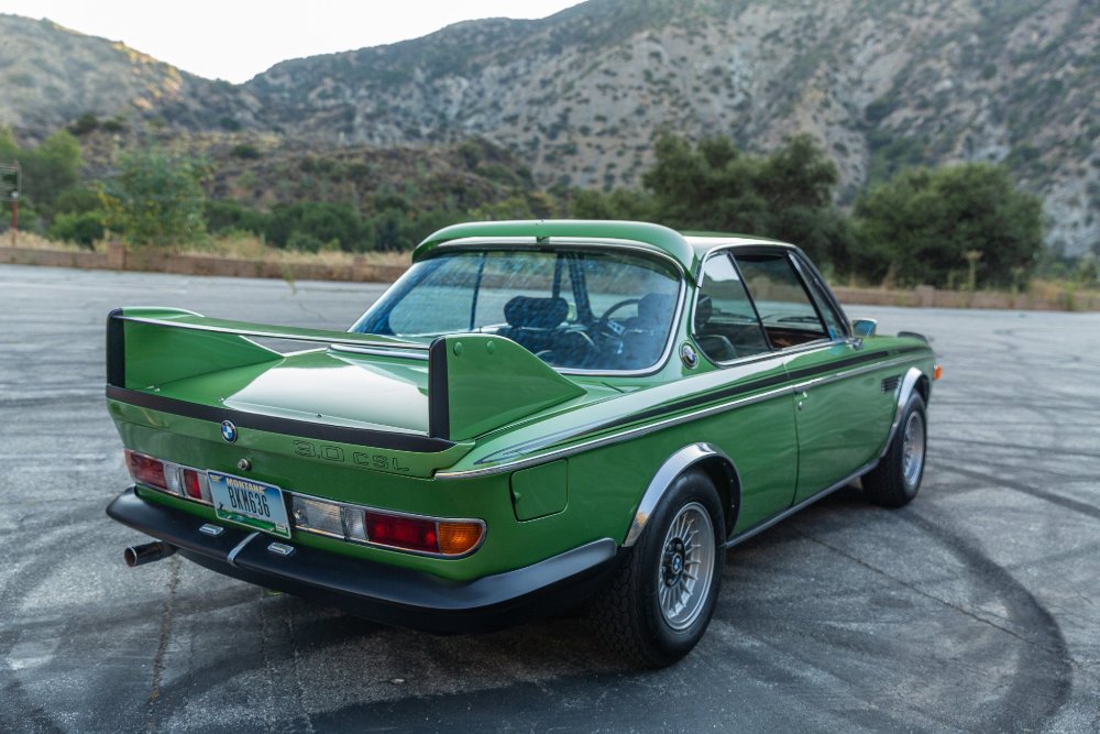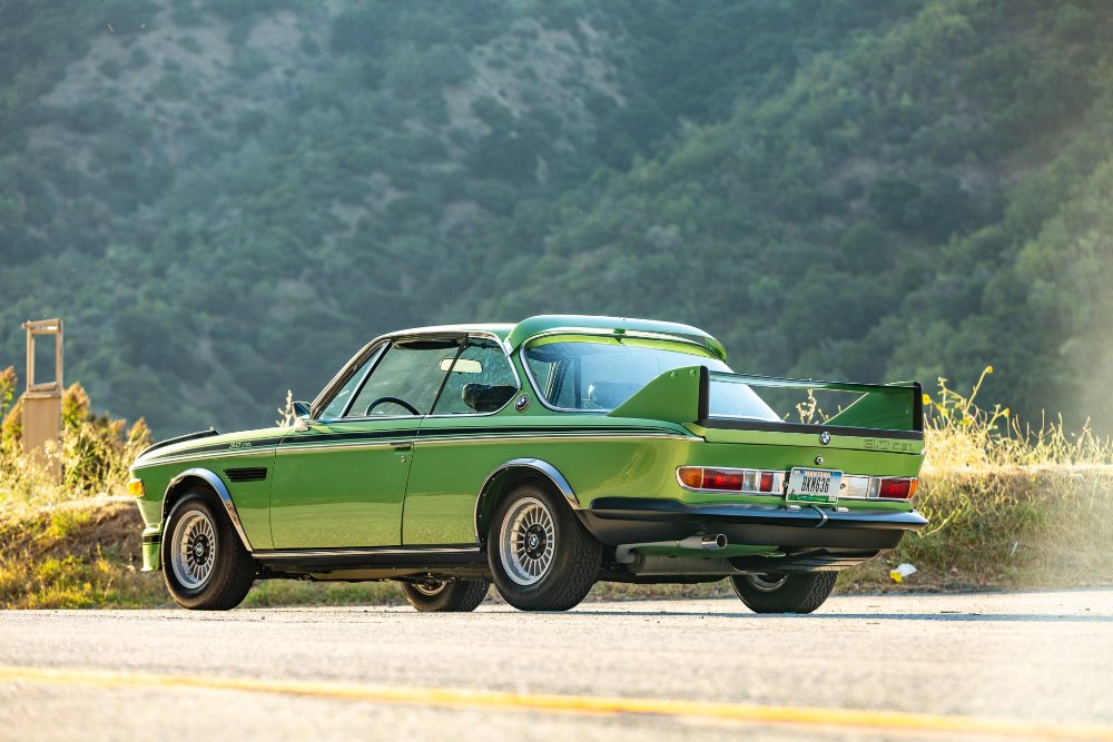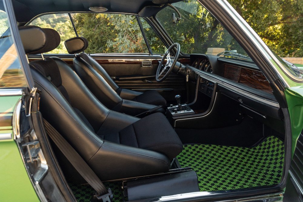 Basado en el coupé E9 y modificado para las carreras, esta unidad de calle en particular está terminada en color verde Taiga y es una de las cuatro unidades que luce este esquema de pintura. El anuncio de la subasta indica que el propietario actual solicitó una restauración integral del coche poco después de comprarlo, lo que incluyó devolverlo a su color Taiga Metallic original tras haber sido pintado en blanco en algún momento de su vida.