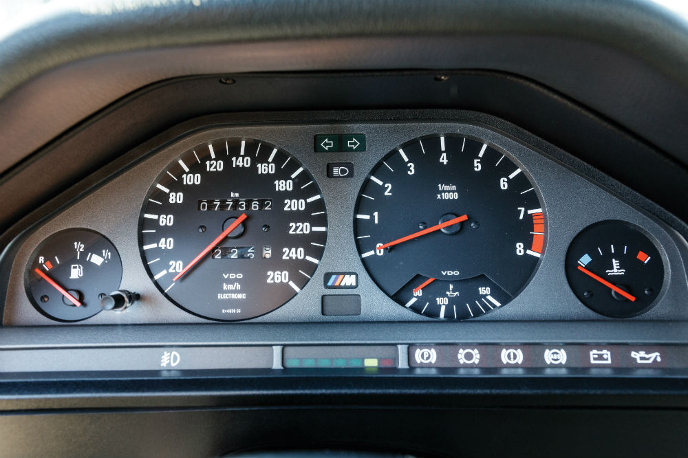 Y el buen estado de este BMW M3 de 1988 no es porque no se haya usado ya que, aunque no le hayan castigado en exceso, el cuentakilómetros marca 77.362. Así que, al menos a priori, a su motor 2.3 tetracilíndrico de 200 CV todavía le debe quedar cuerda para rato.