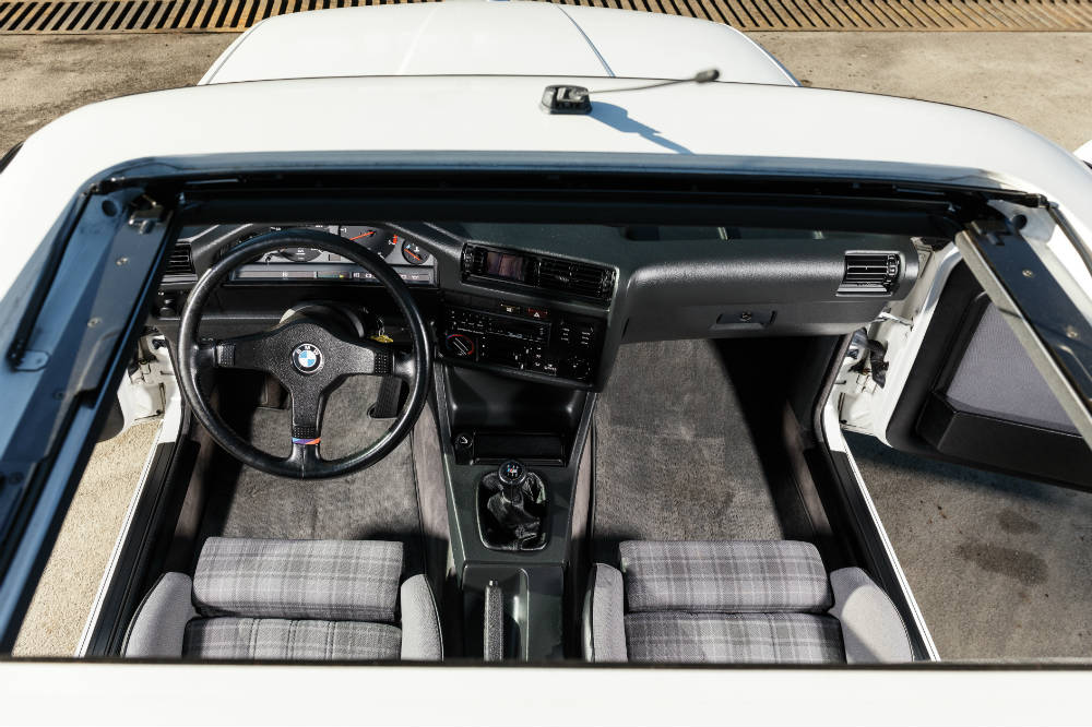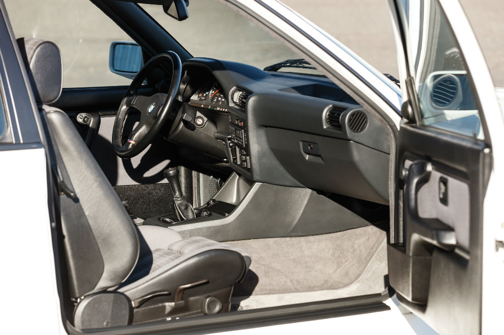 El BMW tiene ya 31 años a sus espaldas pero, a juzgar por las fotos, cualquiera lo diría. El anuncio del modelo afirma que está “excepcionalmente bien mantenido”, y resulta difícil negarlo. Su carrocería de color blanco está impoluta, lo mismo ocurre con los plásticos negros y los cromados brillan prácticamente sin mácula en este BMW M3.