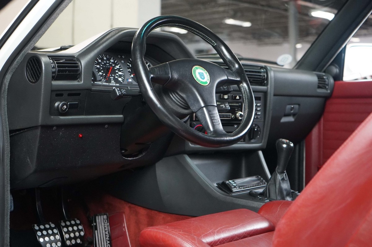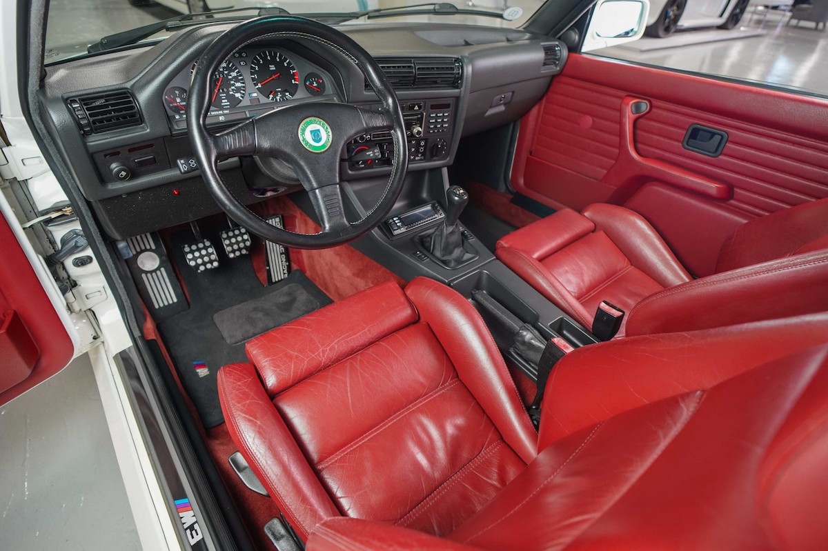 El BMW M3 E30 que hoy nos ocupa no tiene modificación alguna, algo que ayuda a que su valor tienda a la alza. A nivel estético nos encontramos con una unidad rematada en Blanco Alpine y llantas de 15 pulgadas BBS, elementos que se combinan con las defensas típicas del M3, su doble salida de escape y un sugerente alerón.