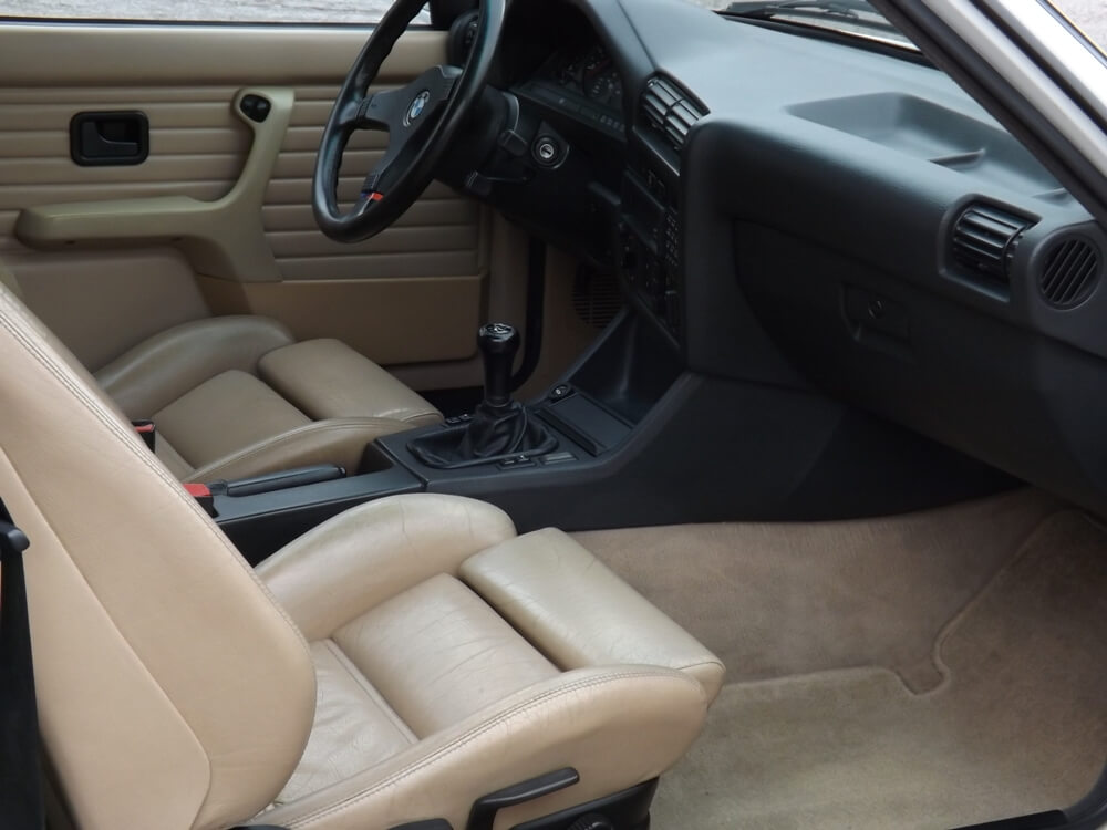 El interior está terminado en cuero de color crema, mientras que el exterior del M3 E30 de 1990 fue sometido a una completa restauración en 2016 que incluyó un exhaustivo trabajo de pintura valorado en 5.600 euros. Ese mismo año, el sistema de frenos fue completamente rehabilitado y se llevó a cabo un servicio de mantenimiento, tras el cual el vehículo apenas ha sido utilizado.
