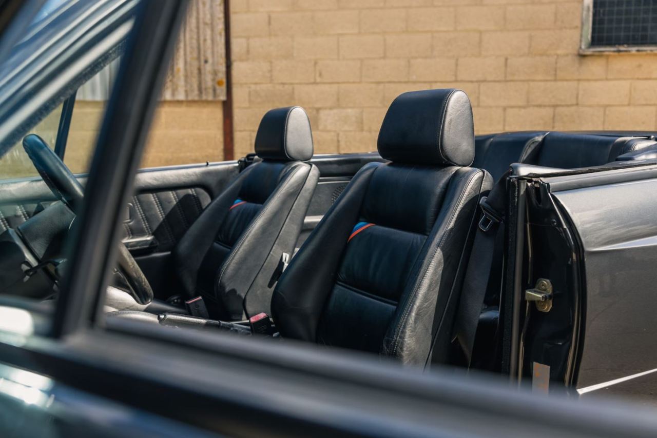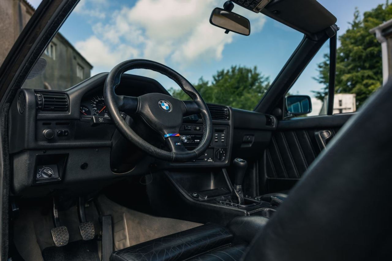 Decimos raro porque el M3 E30, por lo general, se suele encontrar con la famosa carrocería coupé de dos puertas. Sin embargo, esta unidad es un Cabrio, concretamente uno de los 786 ejemplares producidos y uno de los 476 con motor catalizado. Recuerda que BMW acabó fabricando más de 17.000 unidades del M3 E30, por lo que encontrar un descapotable es realmente un hallazgo especial.